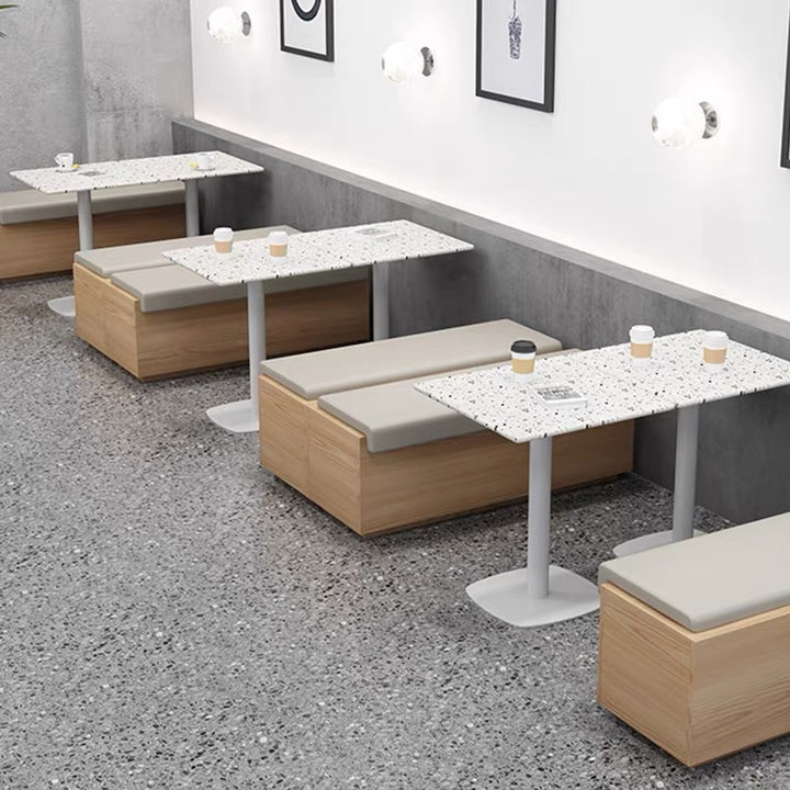 45 * 40 * 45M white small square stool, 120 * 45 * 45M white bench, 120 * 45 * 45M white unpacking storage bench, Off-white armchair, 60 * 60 high white garden pier table, 60 * 75 high terrazzo round table, 60 * 60 * 75 high terrazzo square table |