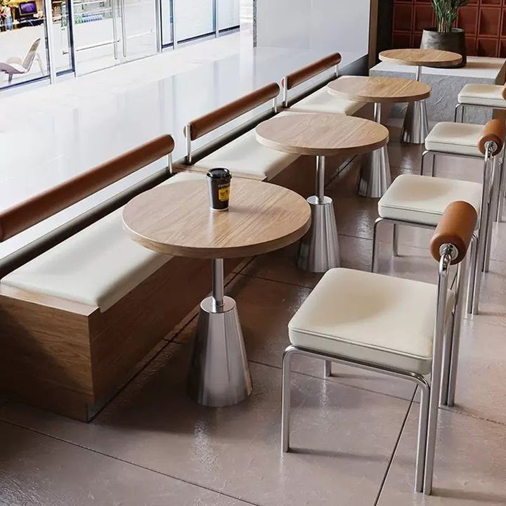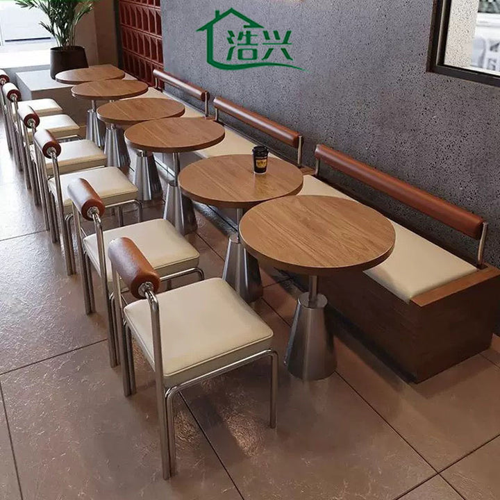 Internet celebrity milk tea shop stainless steel table and chair combination snack cake shop cafe retro style wall card seat sofa