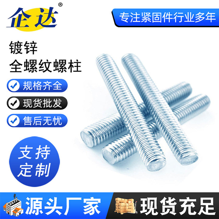 Iron galvanized lead rod tooth strip full thread tooth rod through screw screw 1 meter headless full tooth bolt stud anti-rust carbon steel