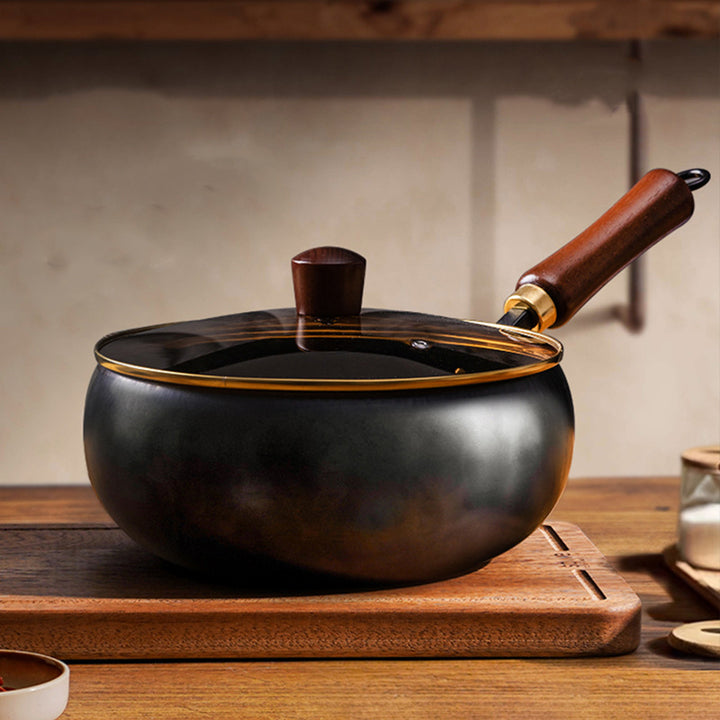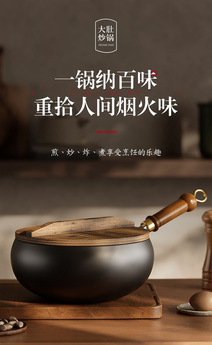 Iron pan Ancient belly pan Household deepened wok Milk pan Uncoated flat bottom wok Handmade ...