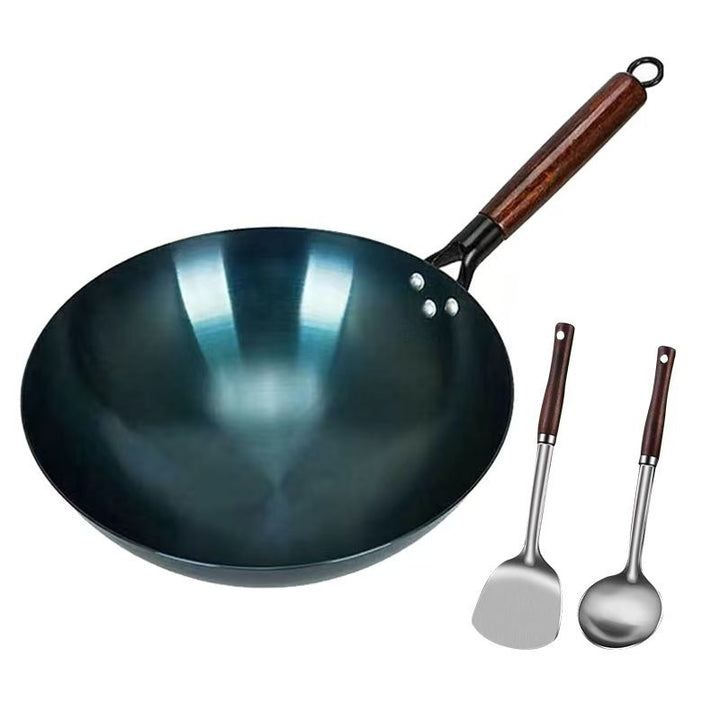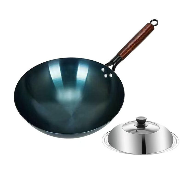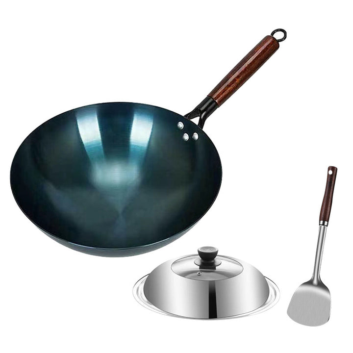 Iron pan traditional old-fashioned wok household gas stove round bottom healthy uncoated 30-4...