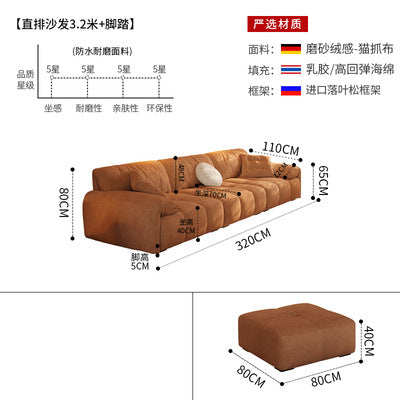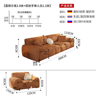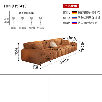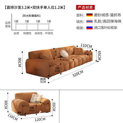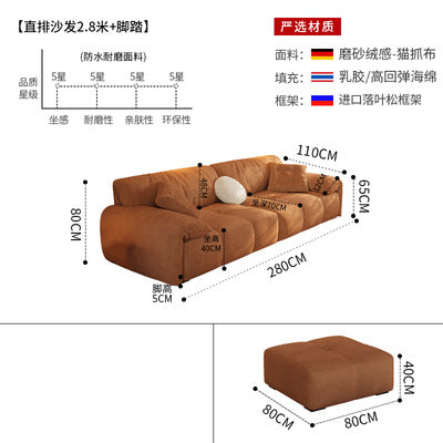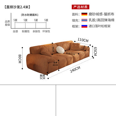 Italian minimalist small apartment living room fabric sofa modern simple straight row latex wabi-sabi designer furniture