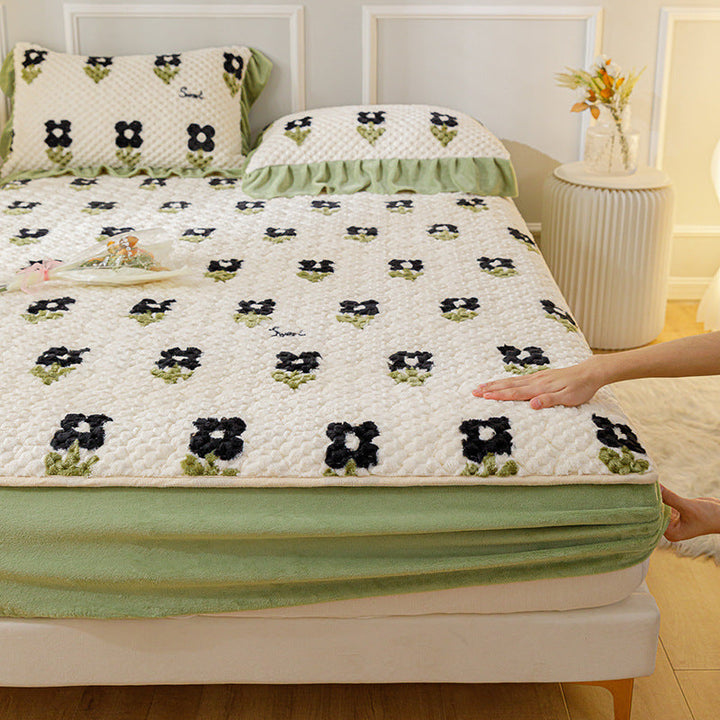 Jacquard soybean padded mattress wholesale winter thickened bean fleece mattress cover fleece...