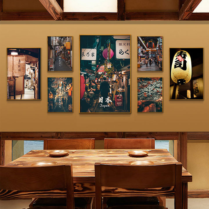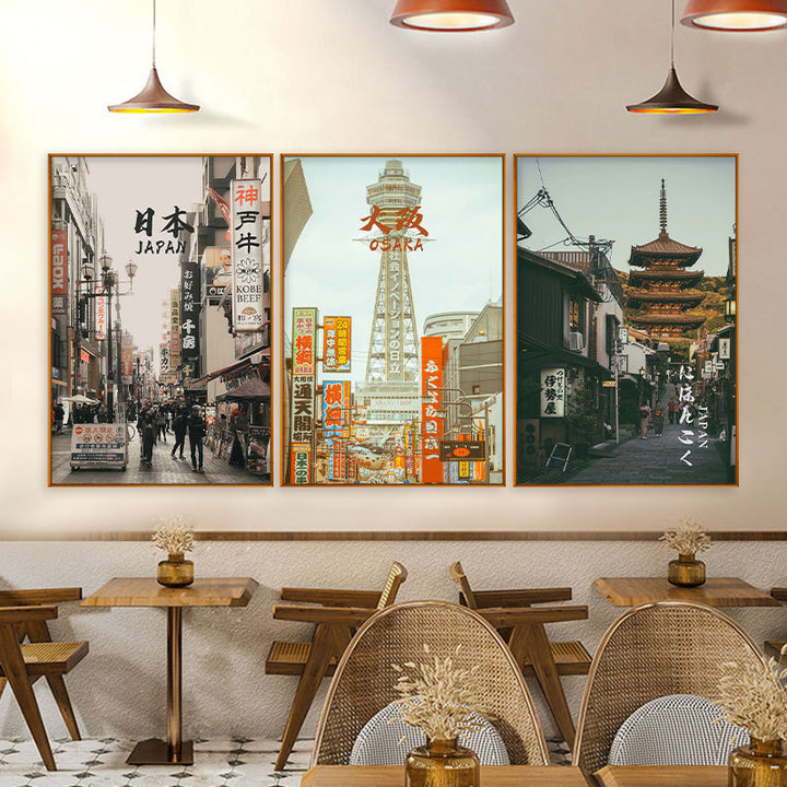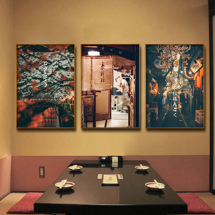 Japanese landscape Tokyo Osaka street picture Japanese-style roast bird ramen barbecue sushi restaurant wall decoration painting