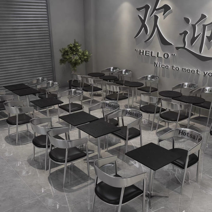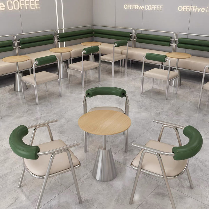 Japanese restaurant Cafe Solid wood table and chair combination Milk tea dessert shop Stainless steel commercial minimalist small round table