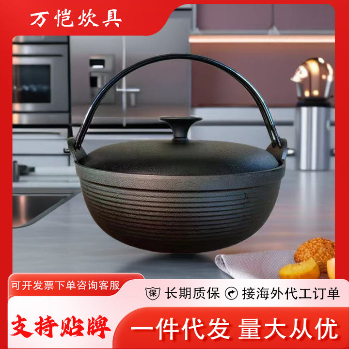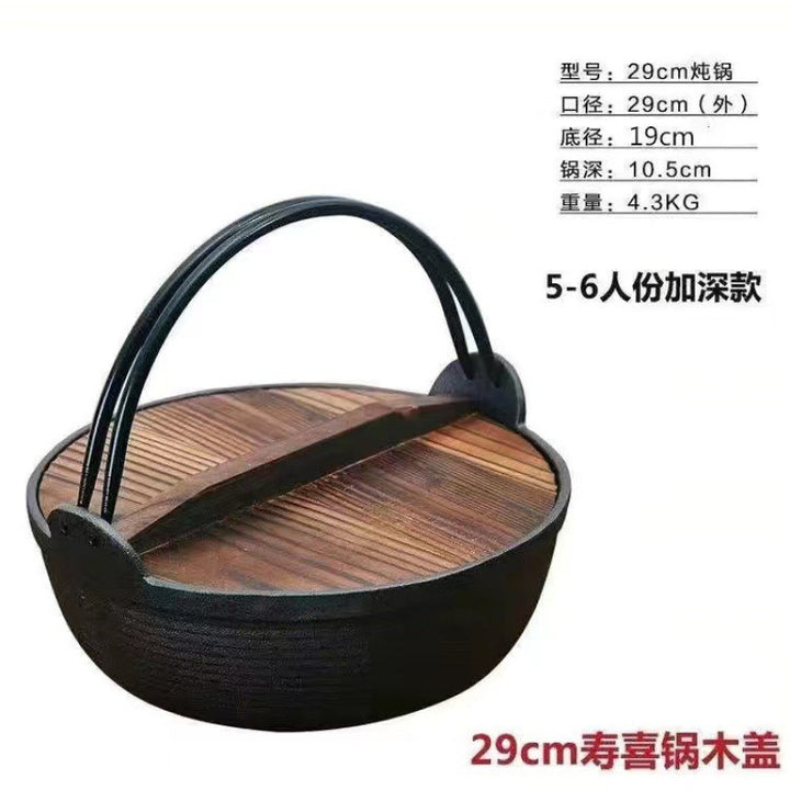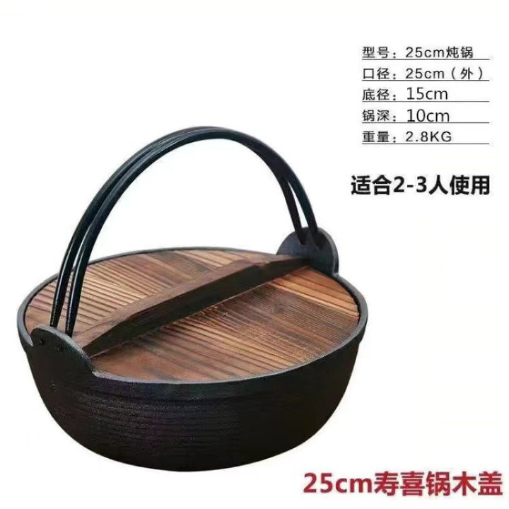 Japanese saucepan Sukiki pot Pure cast iron pig iron Handmade uncoated thickened high tempera...