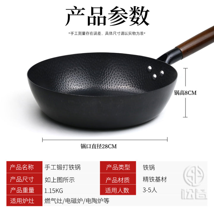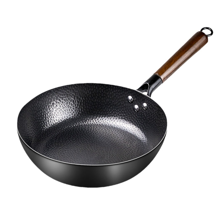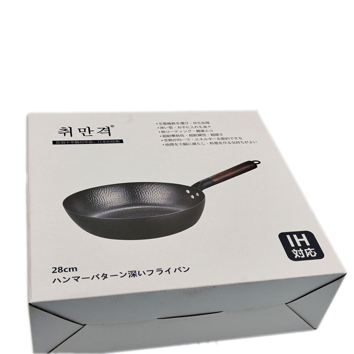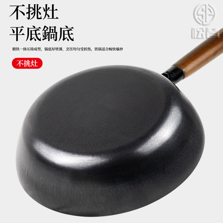 Japanese-style iron collecting deep frying pan 28cm non-stick uncoated beating pattern flat bottom iron pan wok frying pan household