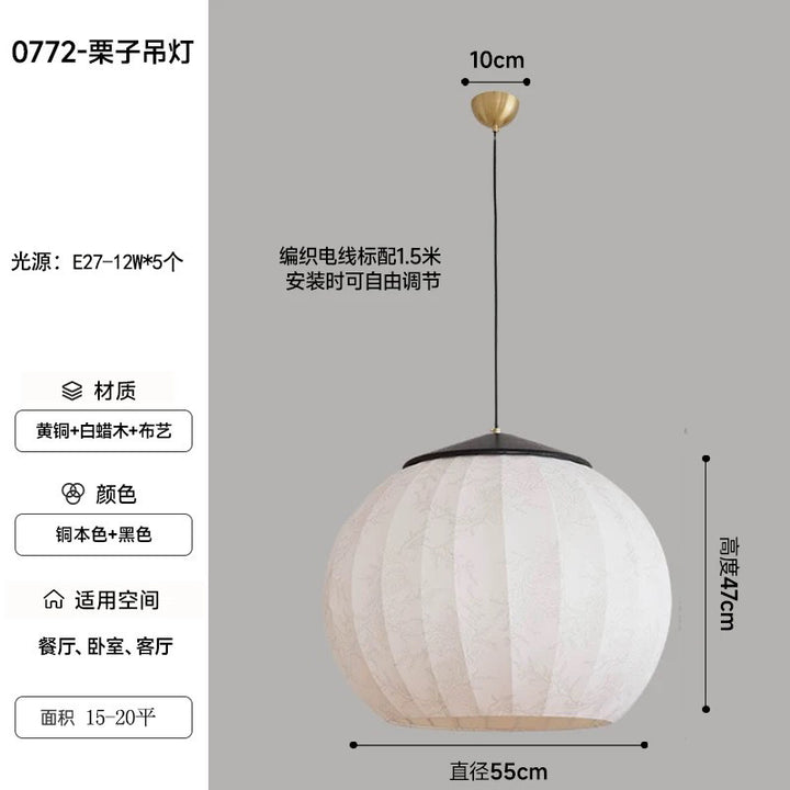 Japanese-style wabi-sabi retro bar restaurant lights B & B bedroom pumpkin print fabric lantern medieval chestnut chandelier