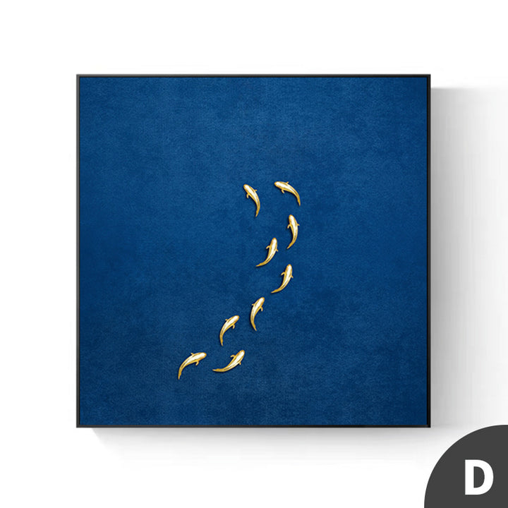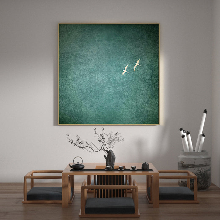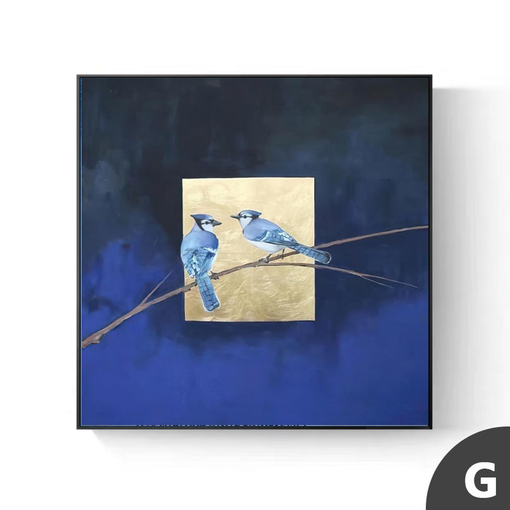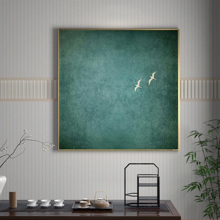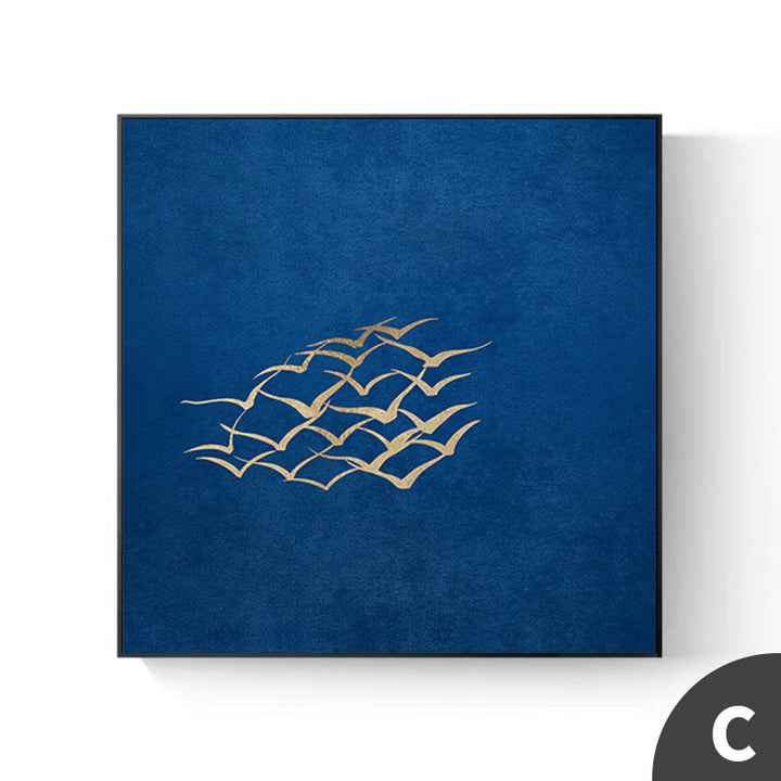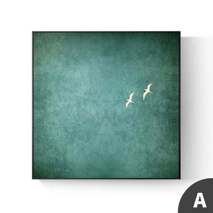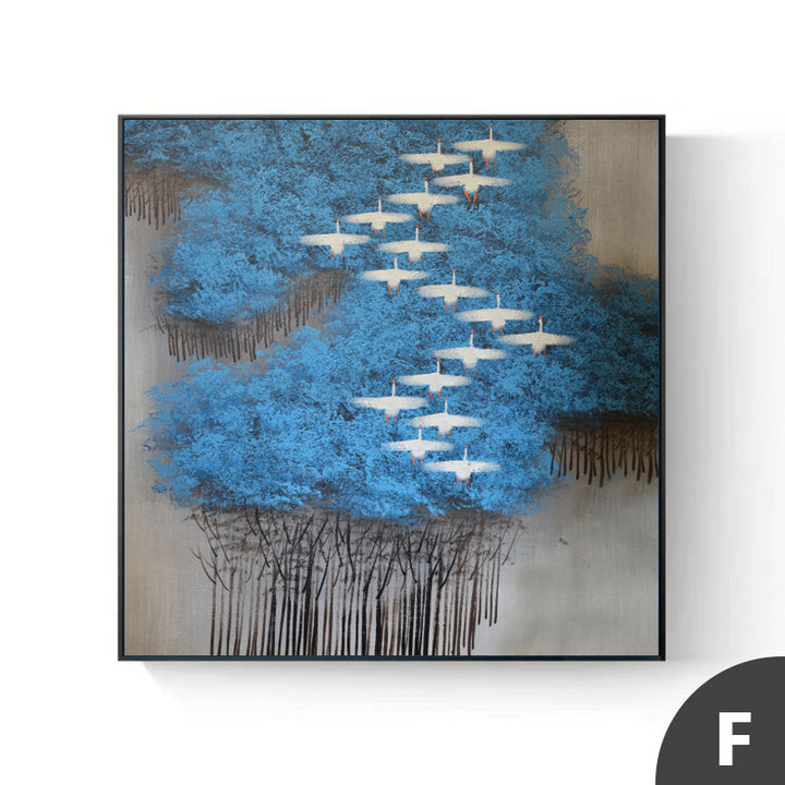 Japanese-style wabi-sabi style decorative painting blue minimalist abstract white flying bird light luxury entrance mural square hanging painting