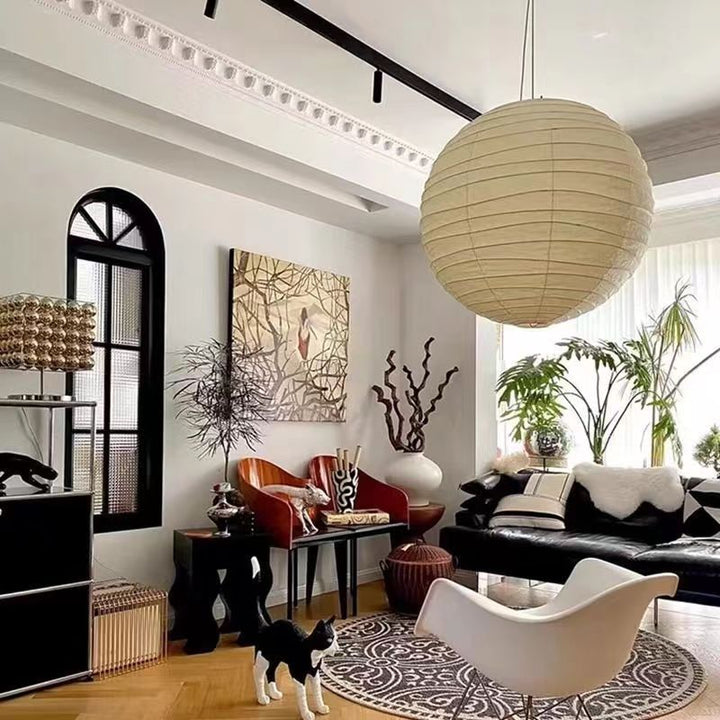 Japanese-style wabi-sabi wind bed and breakfast bedroom horizontal line ball imitation silk lamp Nordic simple irregular ball tea room chandelier