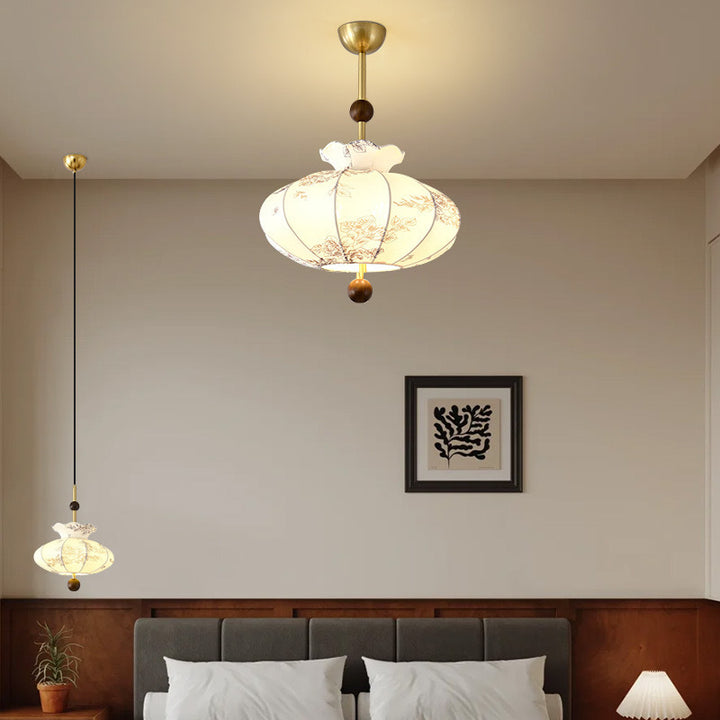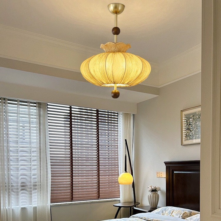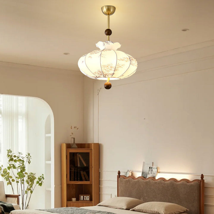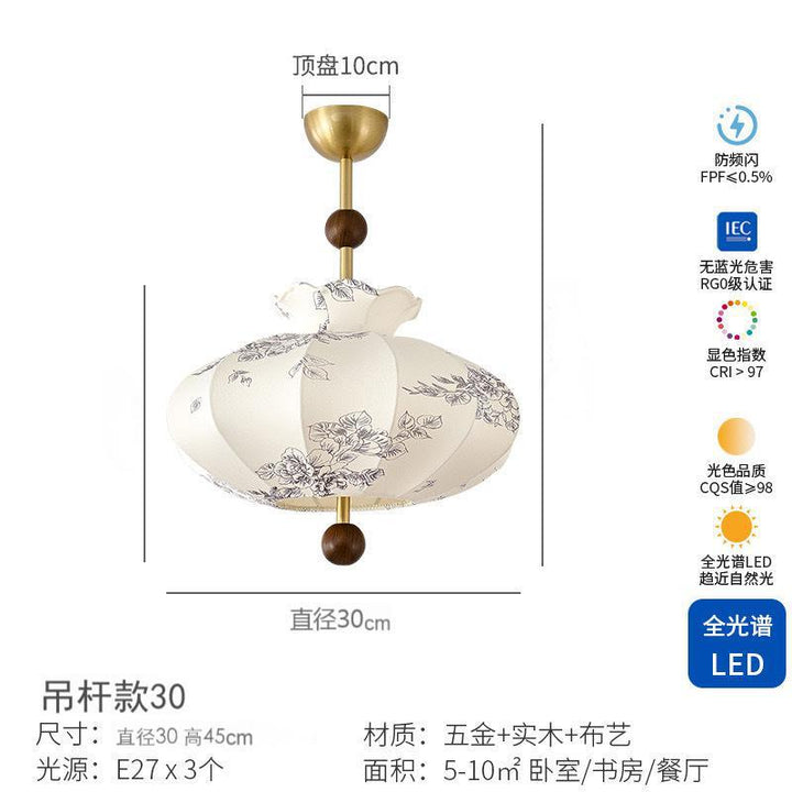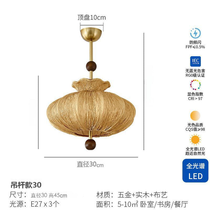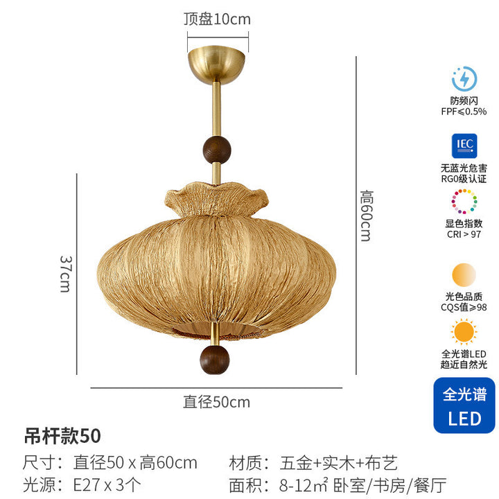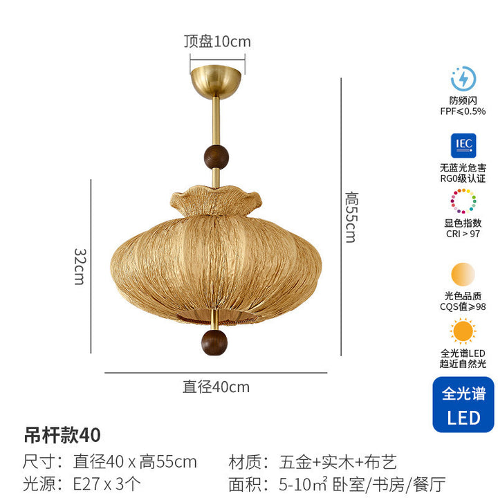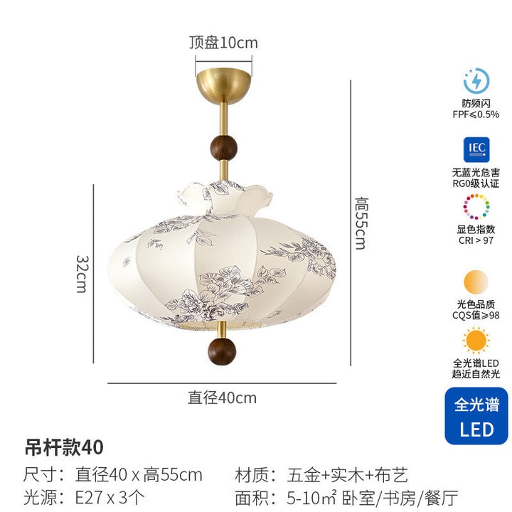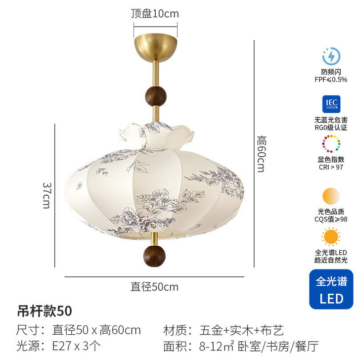 Japanese-style wabi-sabi wind bedroom chandelier French medieval fabric pattern living room light retro Nanyang restaurant solid wood chandelier