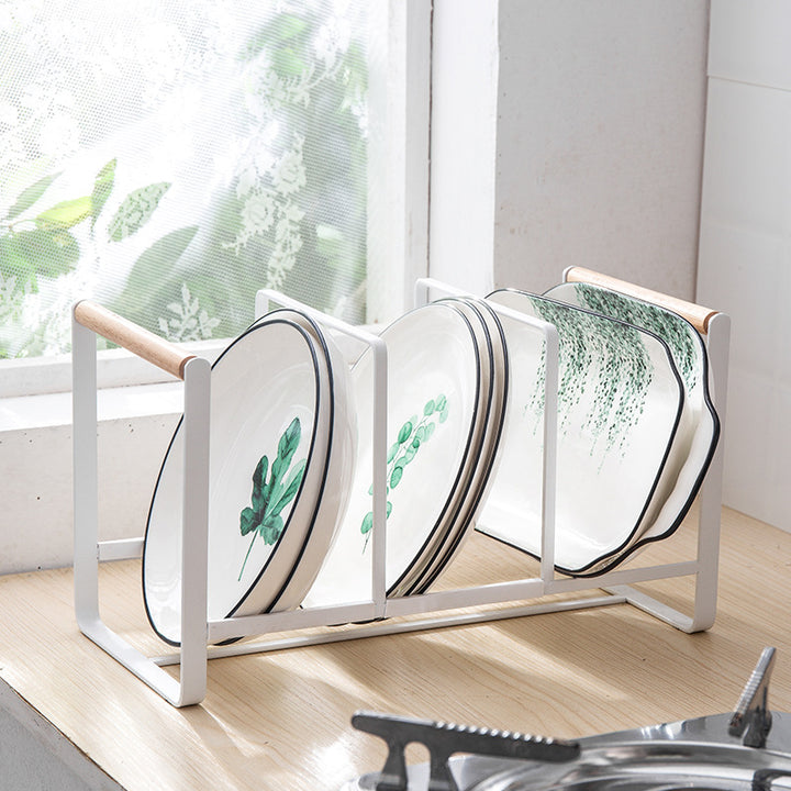 Japanese-style wrought iron rack, lid cutting board drain rack, three-grid bowl rack, kitchen storage supplies wholesale