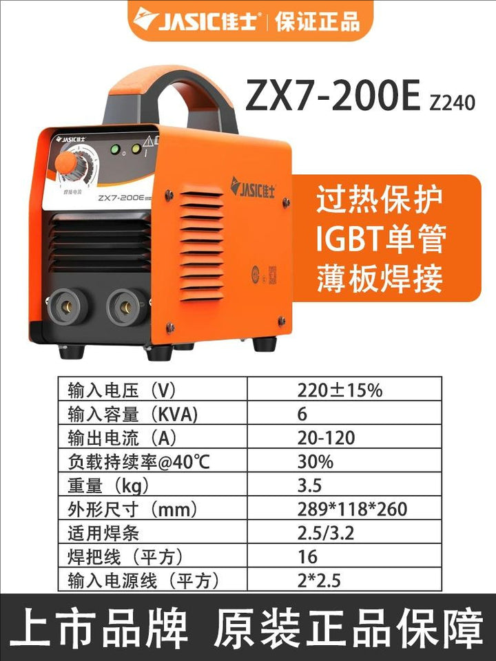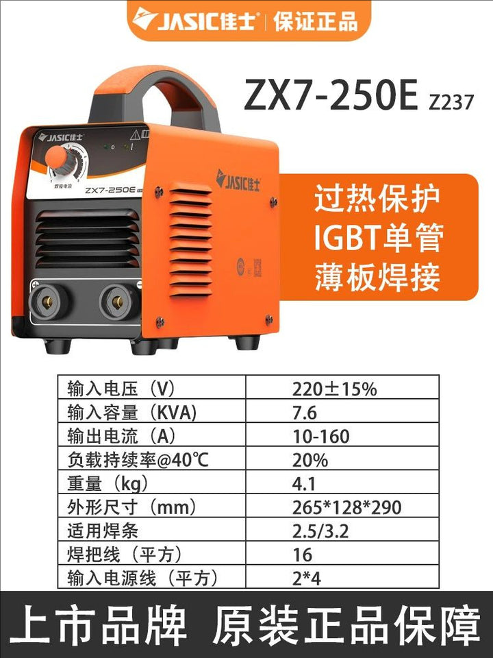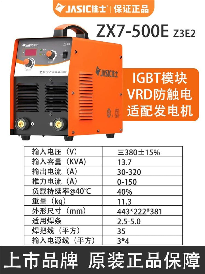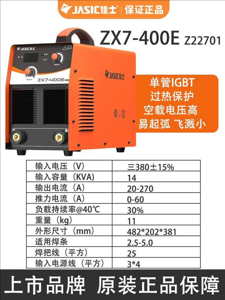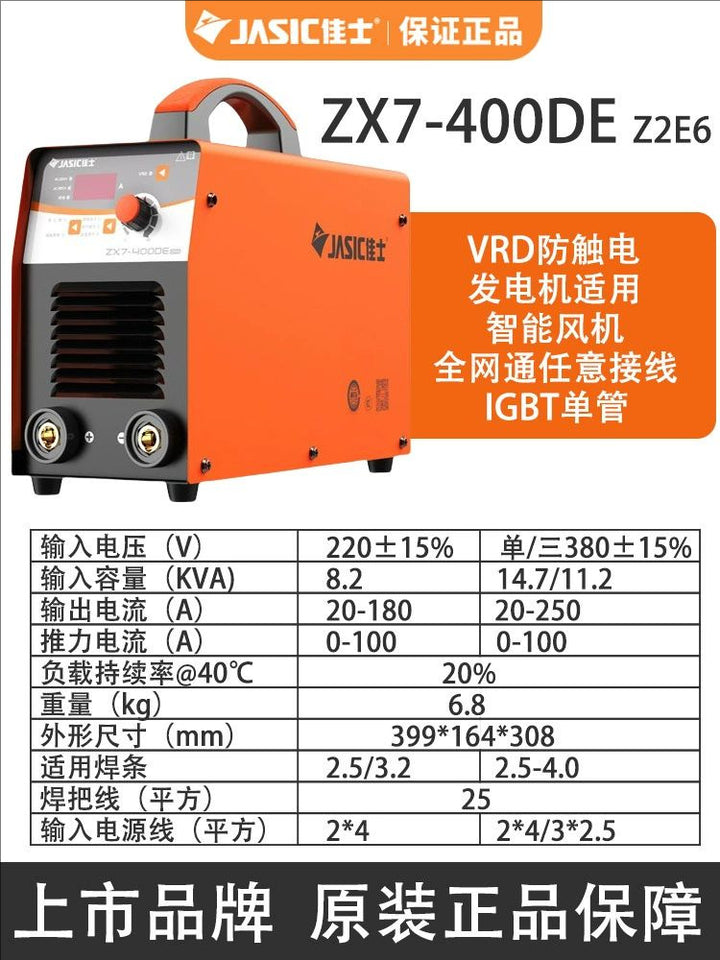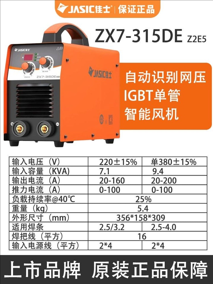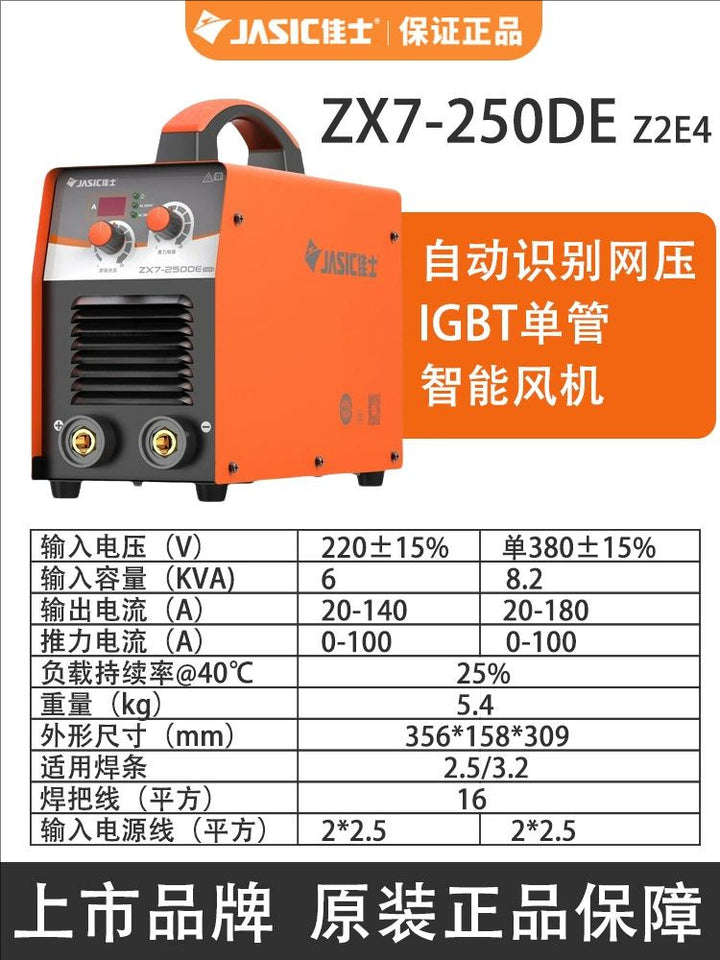 Jasic NBC-500E three-phase welding machine (380V), Jasic ZA7-400DE welding machine (220V-380V), Jasic ZX7-200E welding machine (single phase 220V), Jasic ZX7-250DE welding machine (220V-380V), Jasic ZX7-250E welding machine (single phase 220V), Jasic ZX7-315DE welding machine (220V-380V), Jasic ZX7-400E three-phase welding machine (380V) |