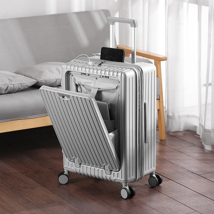Jiaxing front open suitcase 20 inch trolley case expansion travel bag small boarding case zipper password case leather case
