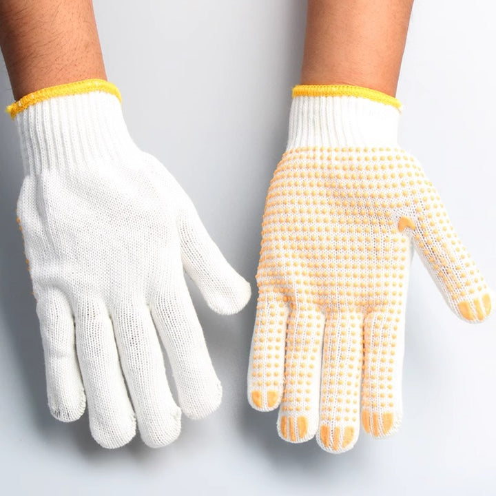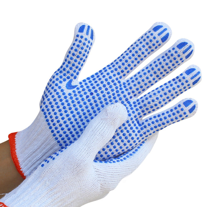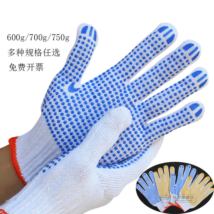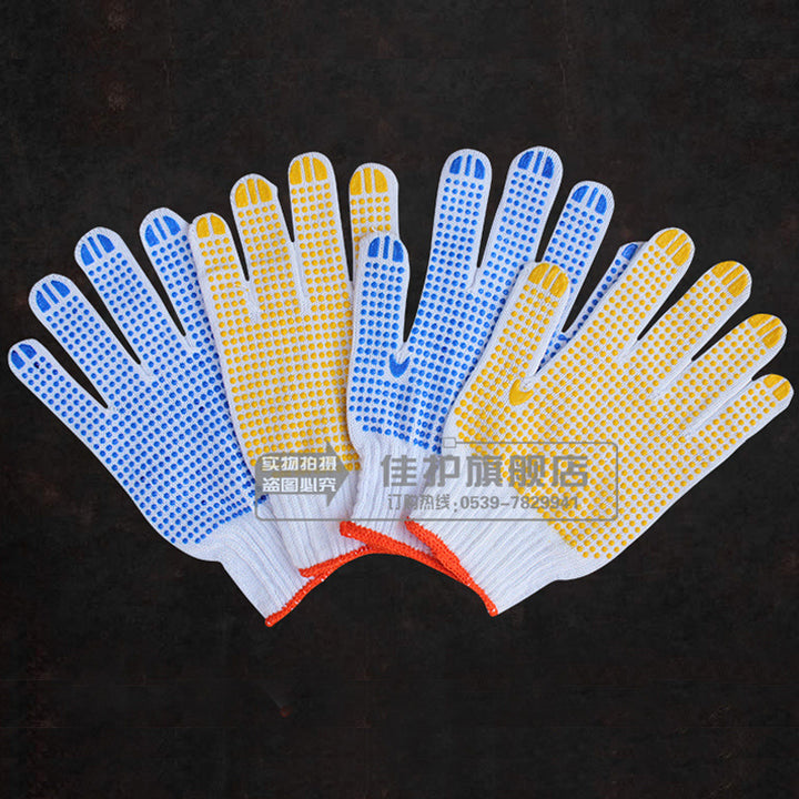 Jiaxu labor insurance thickened bead gloves non-slip and durable cotton yarn protective gloves glue white yarn thread gloves point plastic gloves