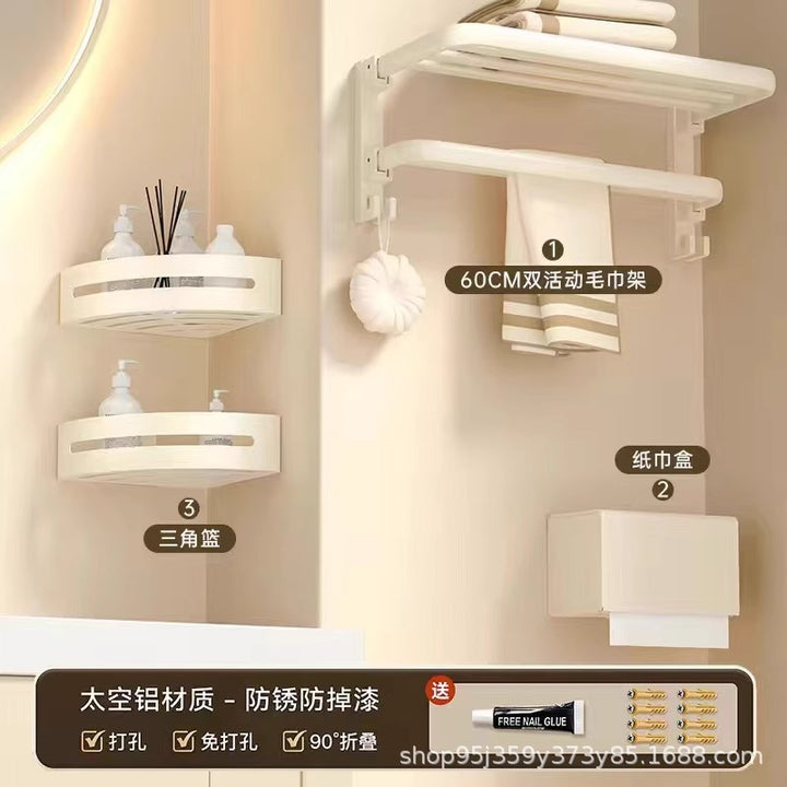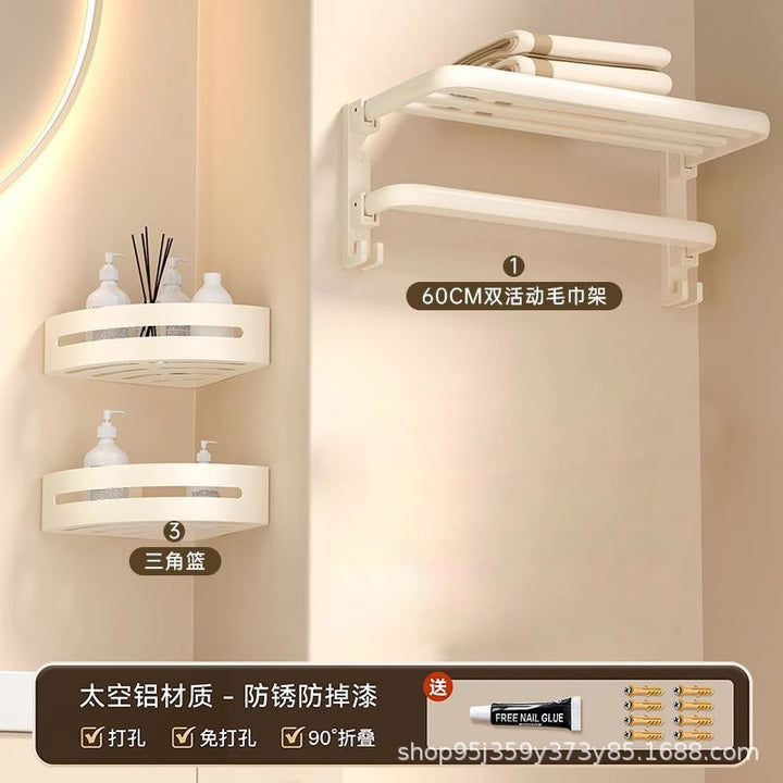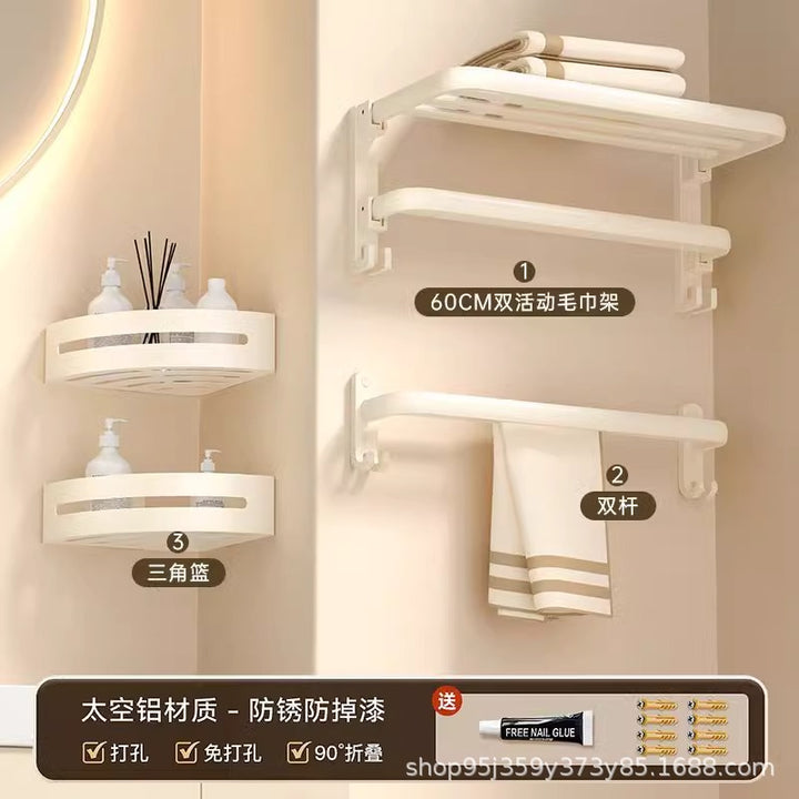 Jie'er bath towel rack toilet non-punching bathroom rack white toilet towel rack space aluminum nail-free