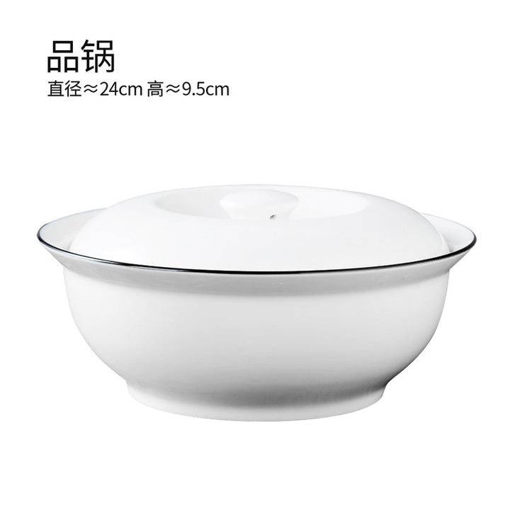 4.5 square bowl, 4.5 round bowl, 5 inch rice bowl, 6 inch noodle bowl, 7英寸汤碗, 8英寸汤碗, 7英寸圆深盘, 7.5英寸方盘, 8-Inch deep disc, 8.5 inch square plate, 9 deep dish, 11 inch fish plate, 12 inch fish plate, Large spoon, taste pot, 2 taste plates, 5 small spoons, Toothpick holder, ashtray, 合金筷子五双, 陶瓷线条筷子(5双), 金边筷子架, 鸡翅木筷子10双, 金边炖盅, 金边江中杯, 金边小景杯, 金边毛巾碟, 黑线竖纹9寸盘 |