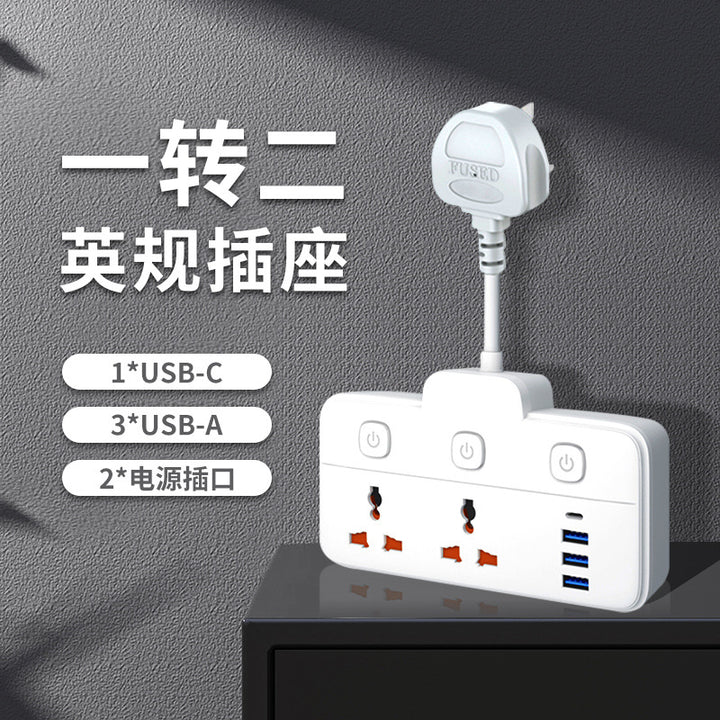 British standard to universal, one to 2 + 3usb + 1type-c (W602U universal) |
