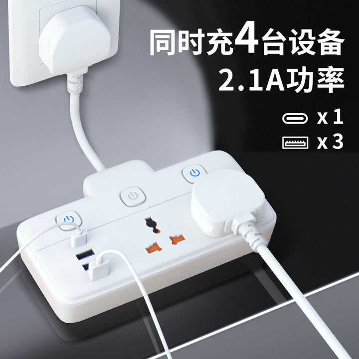 Jishun one to two conversion socket with PD/USB power strip British standard to universal jack sub-control two-plug patch panel