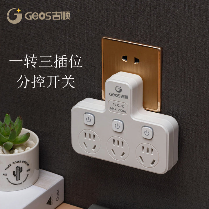 Jishun pure copper socket expansion converter wireless socket one turn multi-point control switch household product type power strip connection