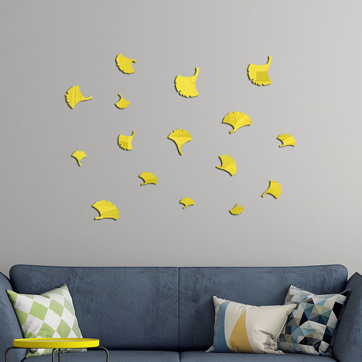 JM424 leaf acrylic 3d wall sticker three-dimensional self-adhesive living room study arrangement wall decorative sticker sticker