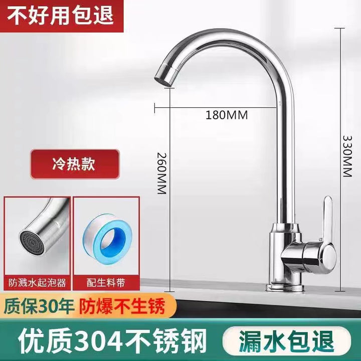 JOMNW stainless steel hot and cold vegetable basin faucet kitchen faucet ball rotation vegetable basin sink high bend 360 °