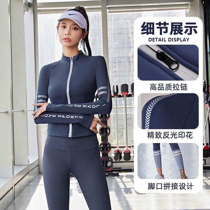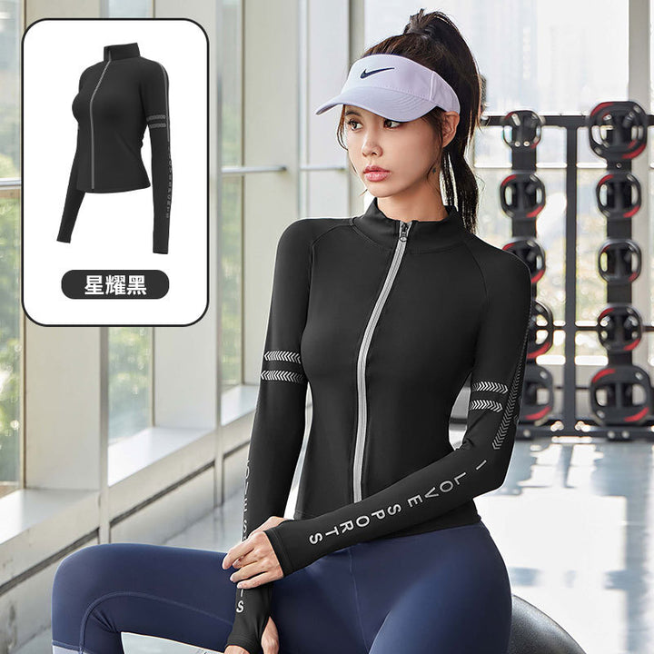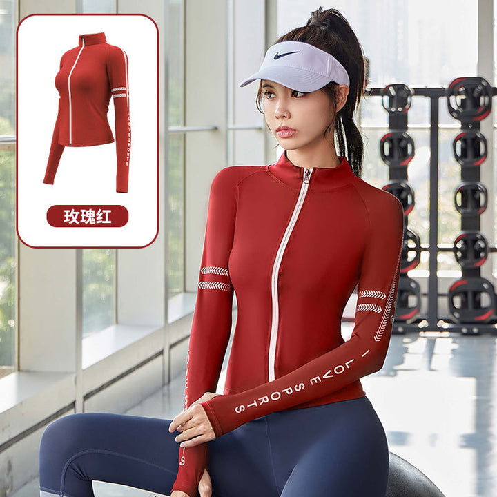Juyatang letter zipper printed yoga jacket semi-turtleneck nude fitness top fashion sports jacket women