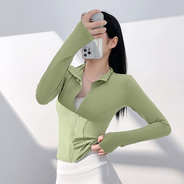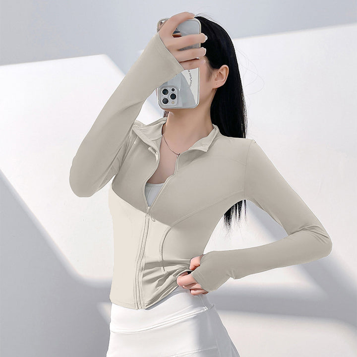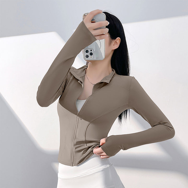 Juyatang sunscreen yoga clothes nude outdoor tight breathable sports fitness jacket top women