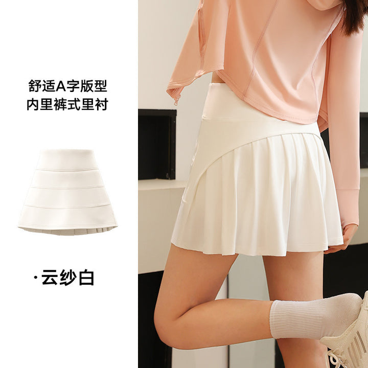Juyitang anti-light pleated skirt women's ice-feeling fake two-piece sports short skirt high waist elastic large size A-shaped skirt