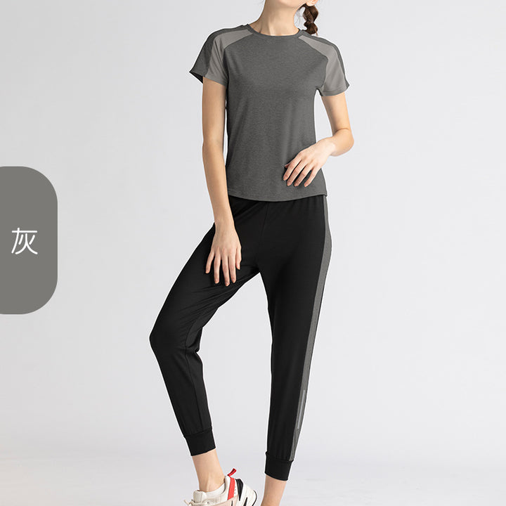 Juyitang summer sportswear mesh yarn breathable loose nude outdoor running fitness sports sui...