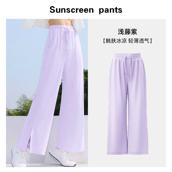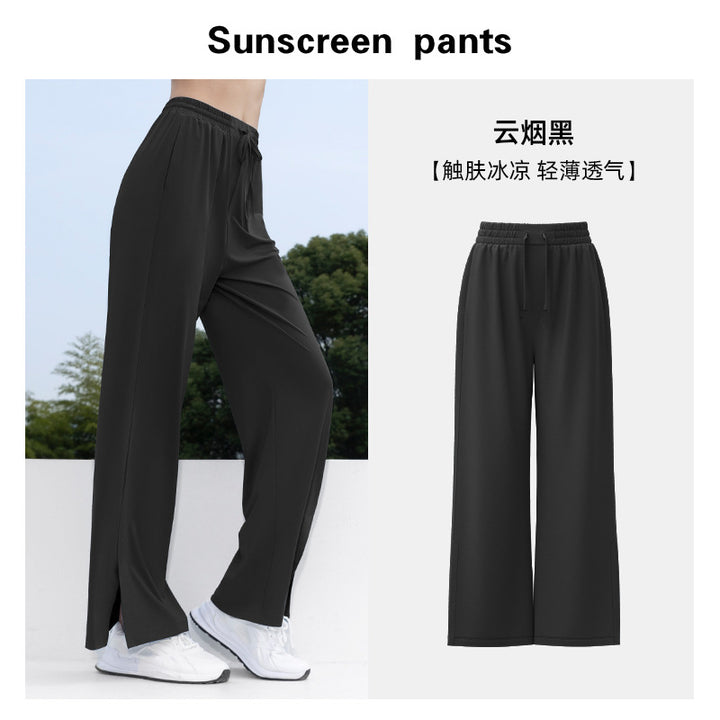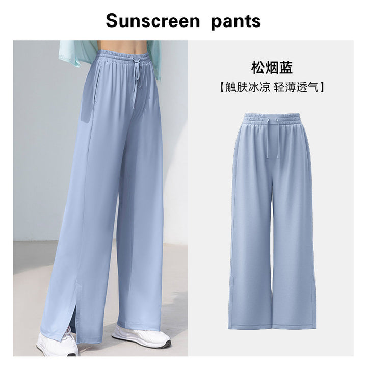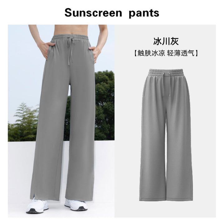 Juyitang sunscreen high-waisted wide-leg pants women's high elastic nude ice-sensitive anti-ultraviolet micro-pull sweatpants