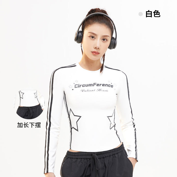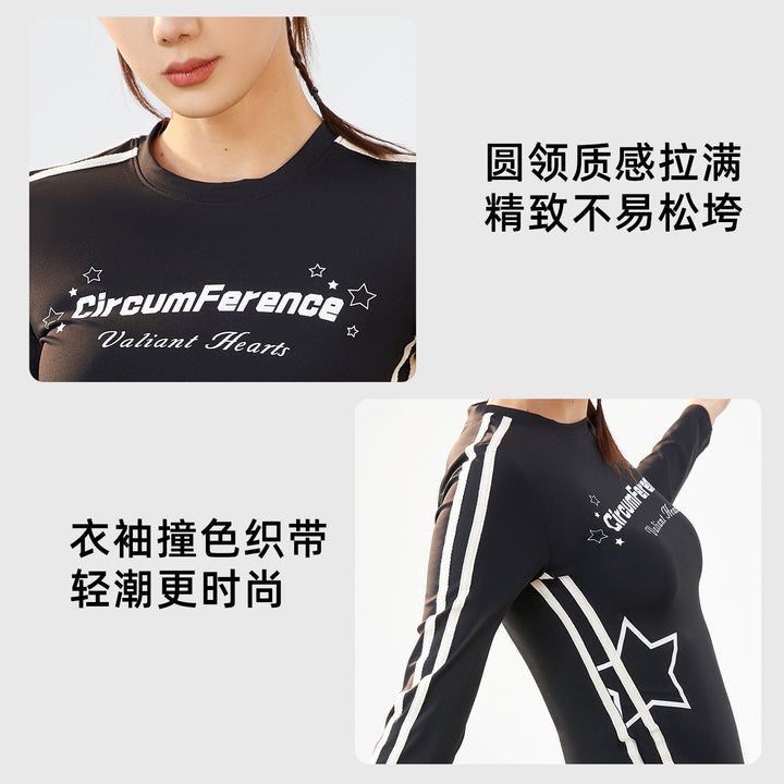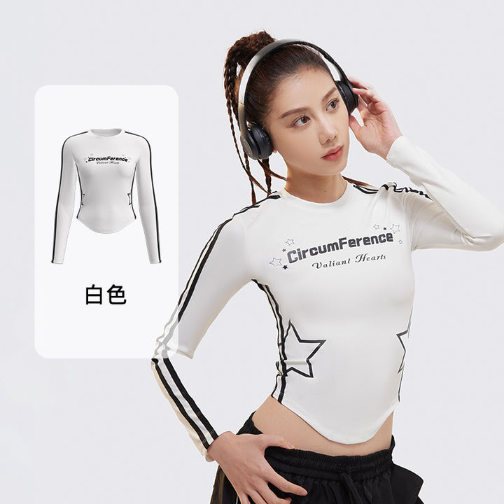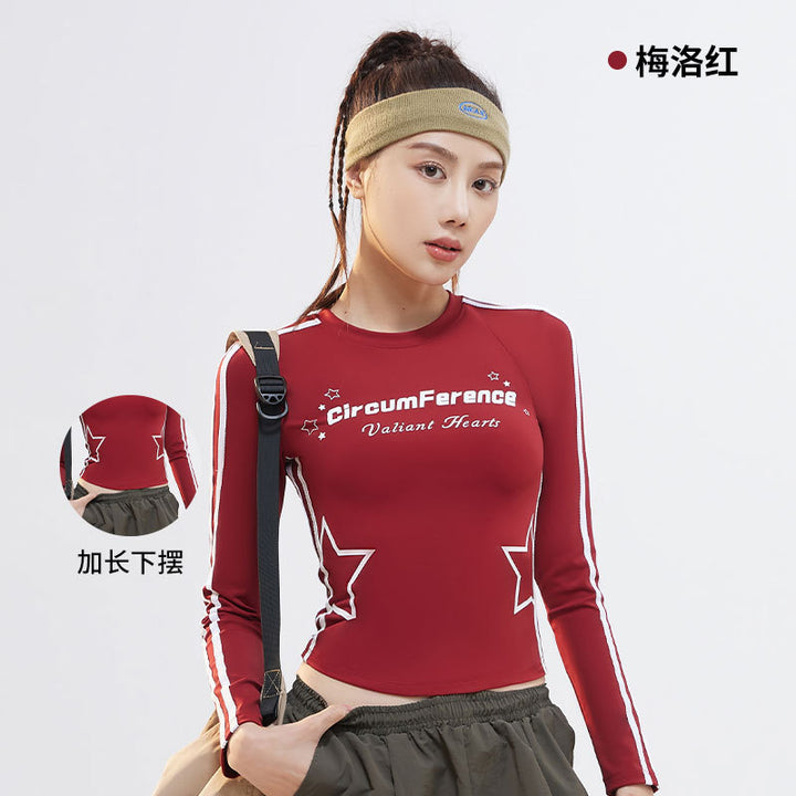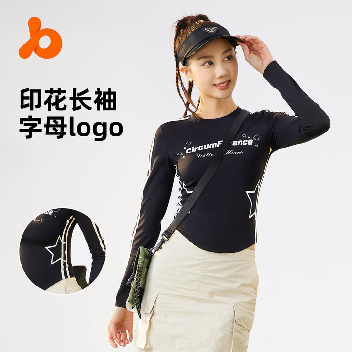 Juyitang webbing printed long-sleeved American retro style round neck waist thin cloud high e...