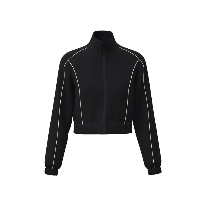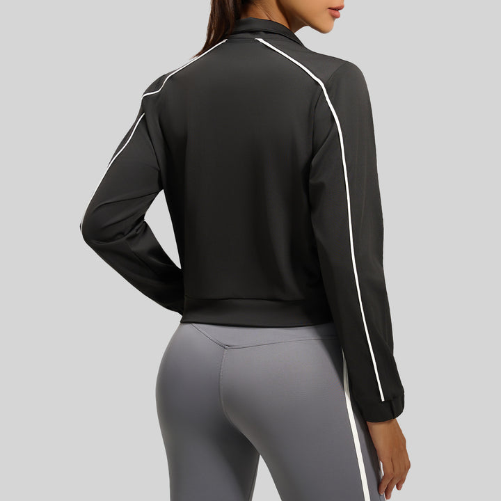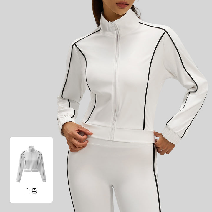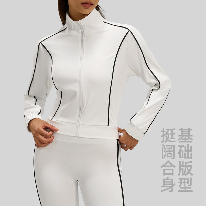 Juyitang's new linear loose cardigan jacket, spring and autumn contrasting colors, high elastic and breathable casual sports jacket women