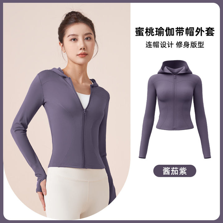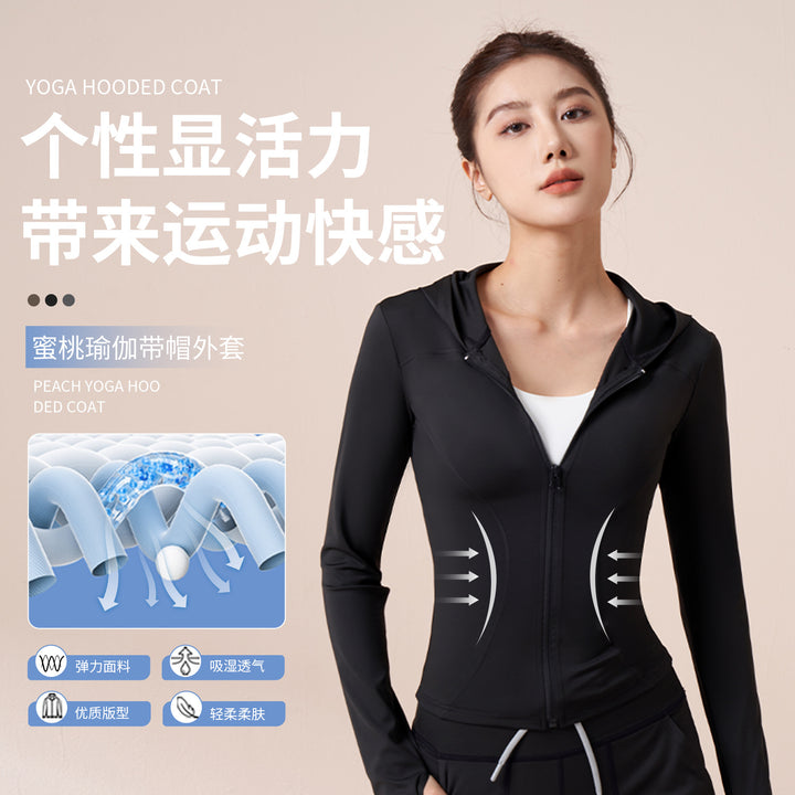 Juyitang's new tight-fitting hooded yoga clothes high-elastic nude slim-fit cardigan with sleeves yoga jacket