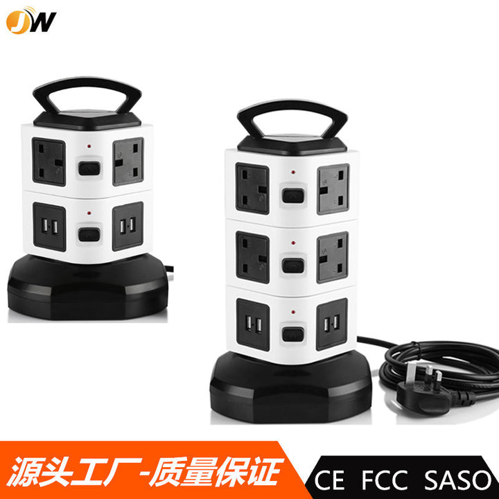 JW103 tower socket European standard British standard American standard vertical intelligent socket with USB multi-function British standard power ...