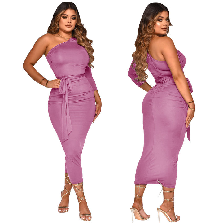 K10055 Independent Station Explosive Added Color Shoulder Dress European and American Cross-border Women's Hip Wrap Dress Spring and Summer