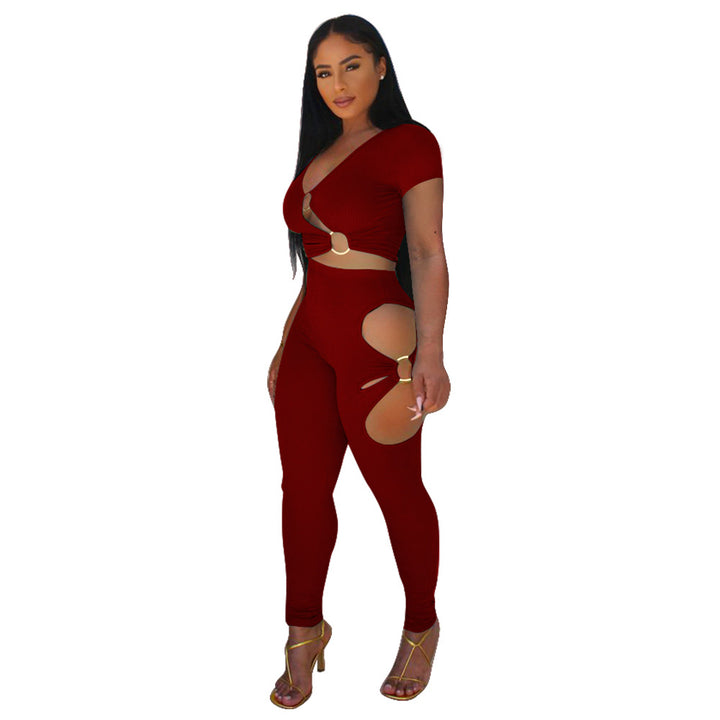 K10064 popular added color European and American women's clothing summer solid color pants set supply 2022 new models
