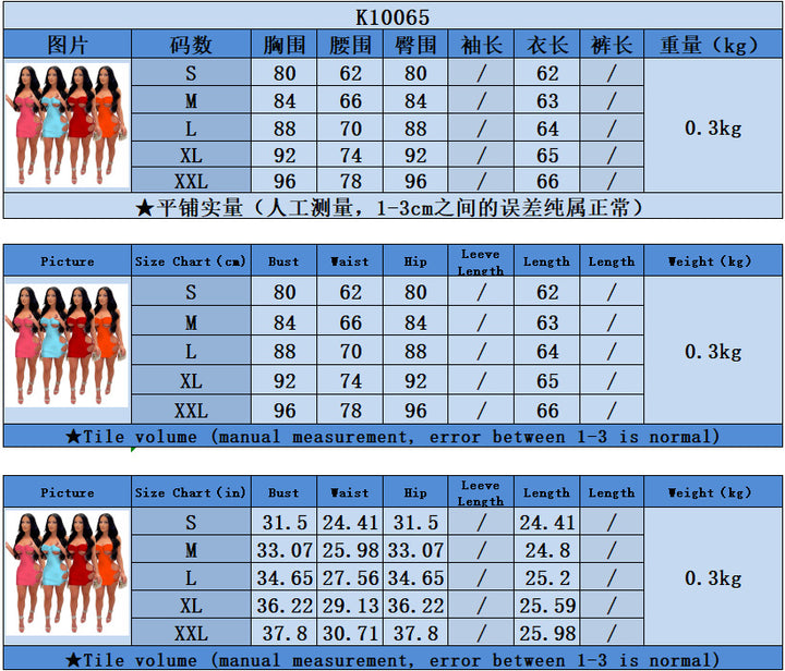 K10065 popular women's clothing 2022 European and American hot drilling hollow sexy suspender nightclub skirt
