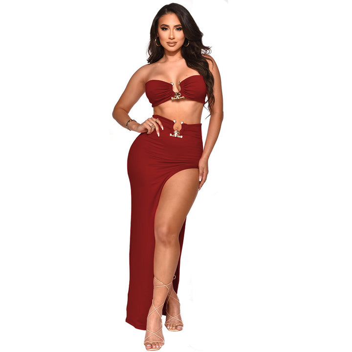 K10107wish European and American women's clothing 2022 summer new chest wrap sexy irregular skirt set
