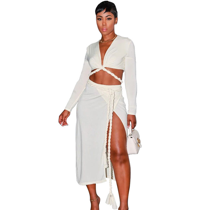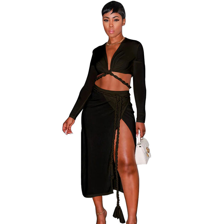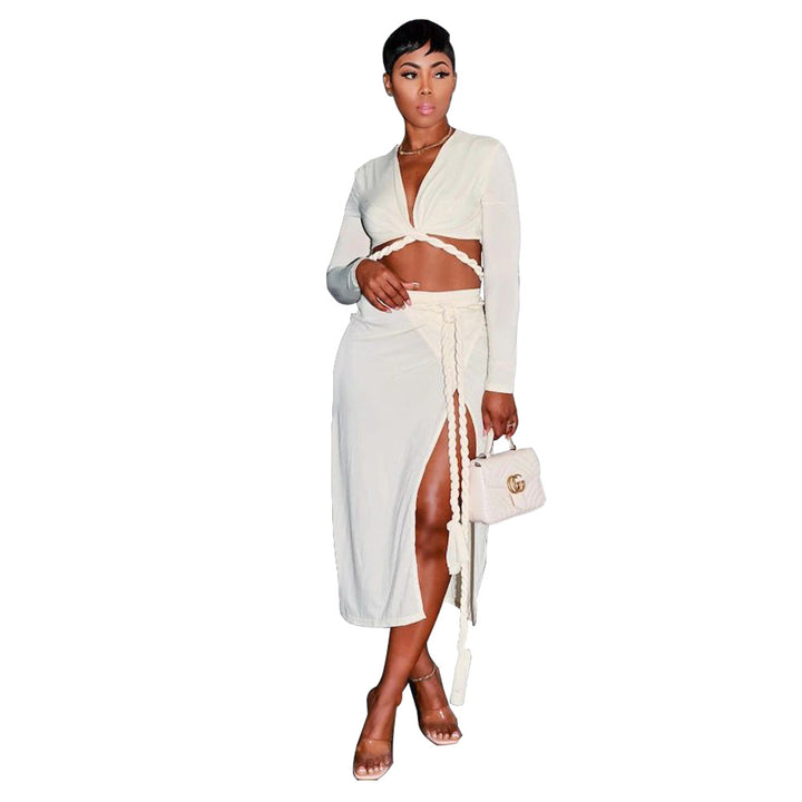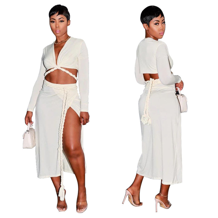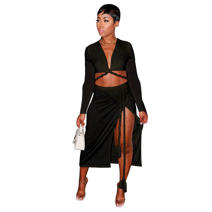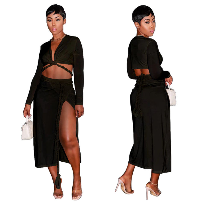 K10225 European and American women's clothing 2022 autumn sexy split skirt set straps solid color two-piece set