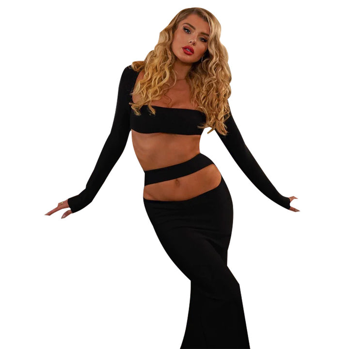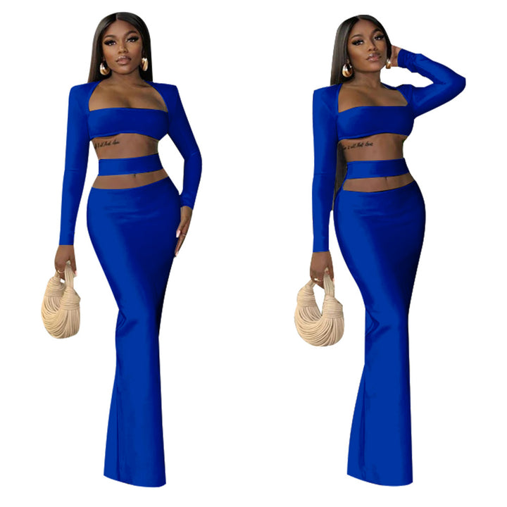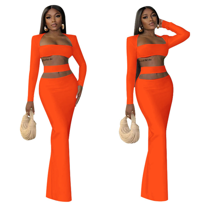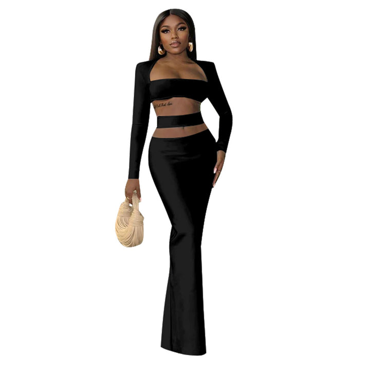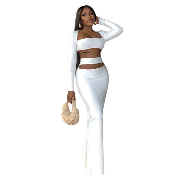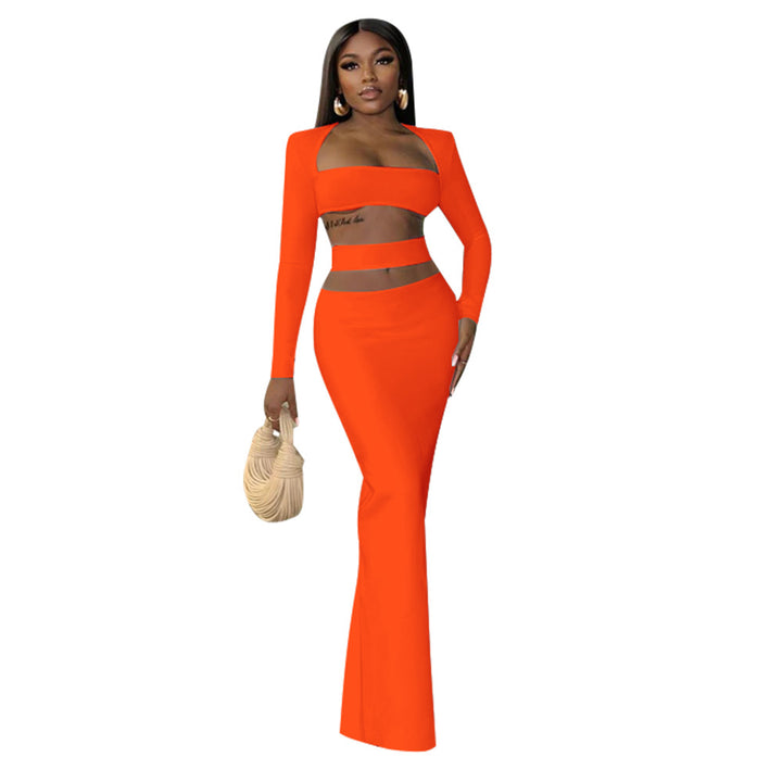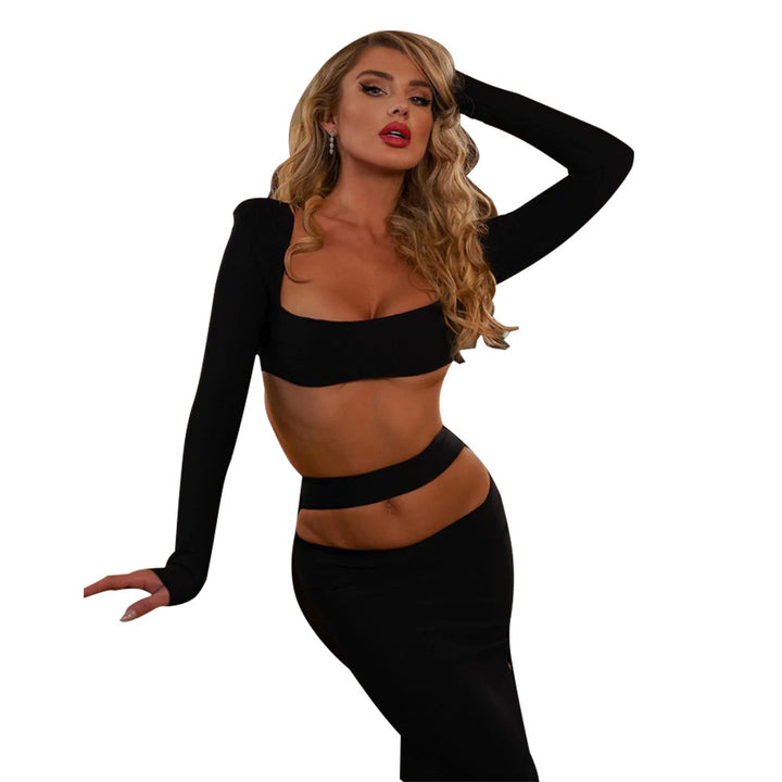 K10357 Independent Station European and American Cross-border Fashion Women's Clothing Autumn and Winter Solid Color One-word Neck Long Sleeve Sexy...