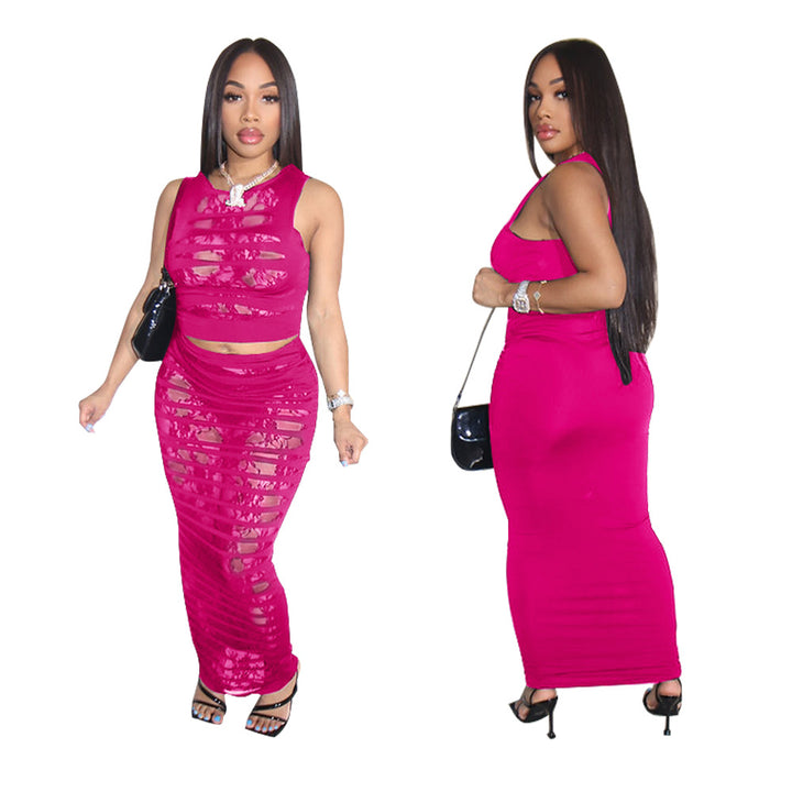 K10710 European and American fashion women's clothing sexy sleeveless lace splicing skirt set 2024 new