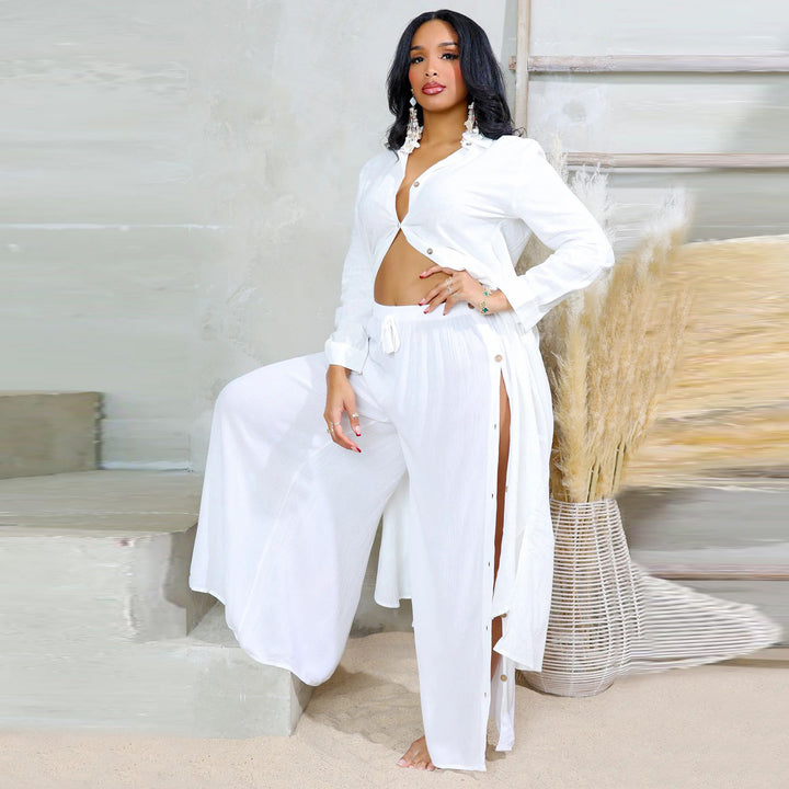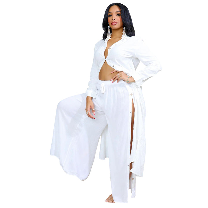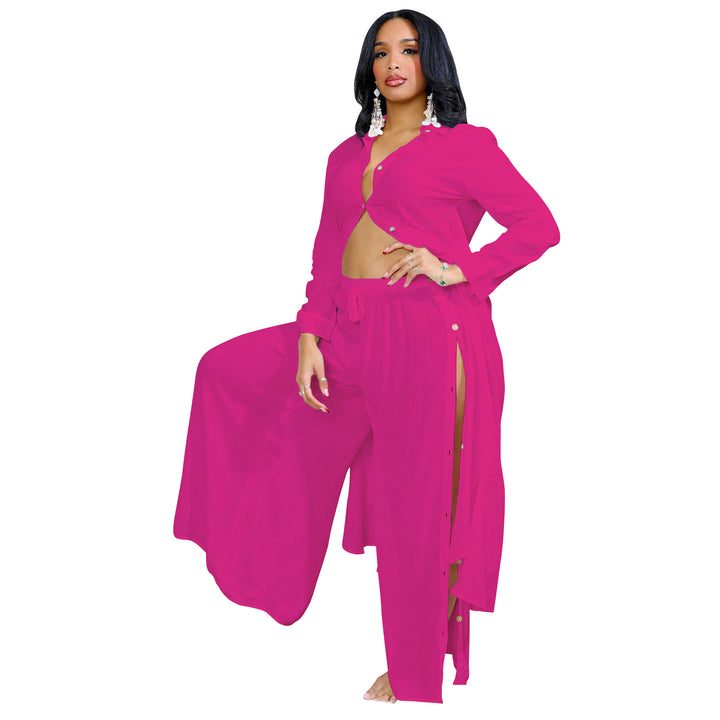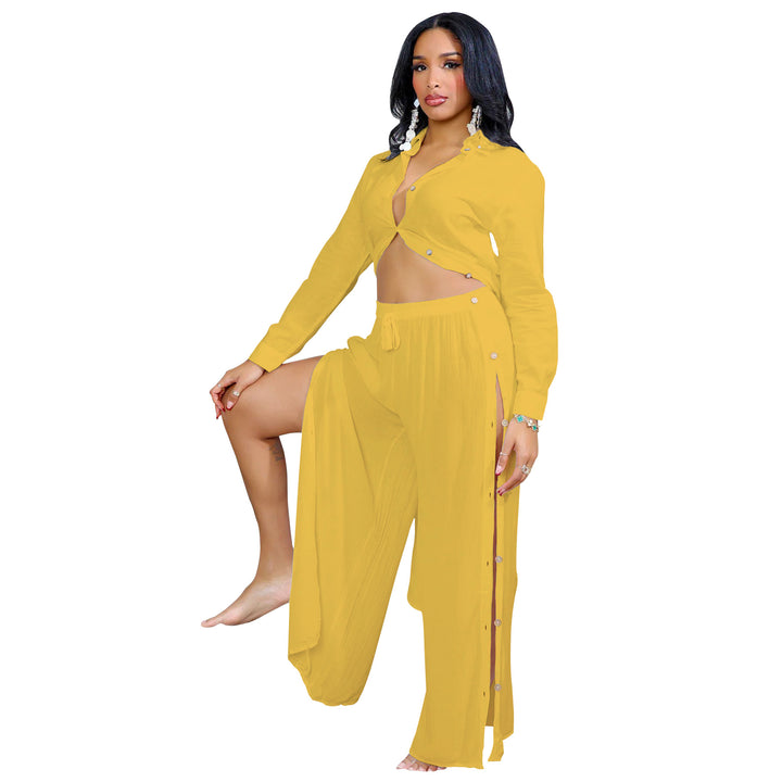 K10778 European and American women's clothing wholesale solid color fashion breasted pants set autumn explosion