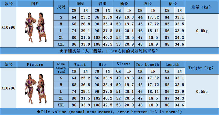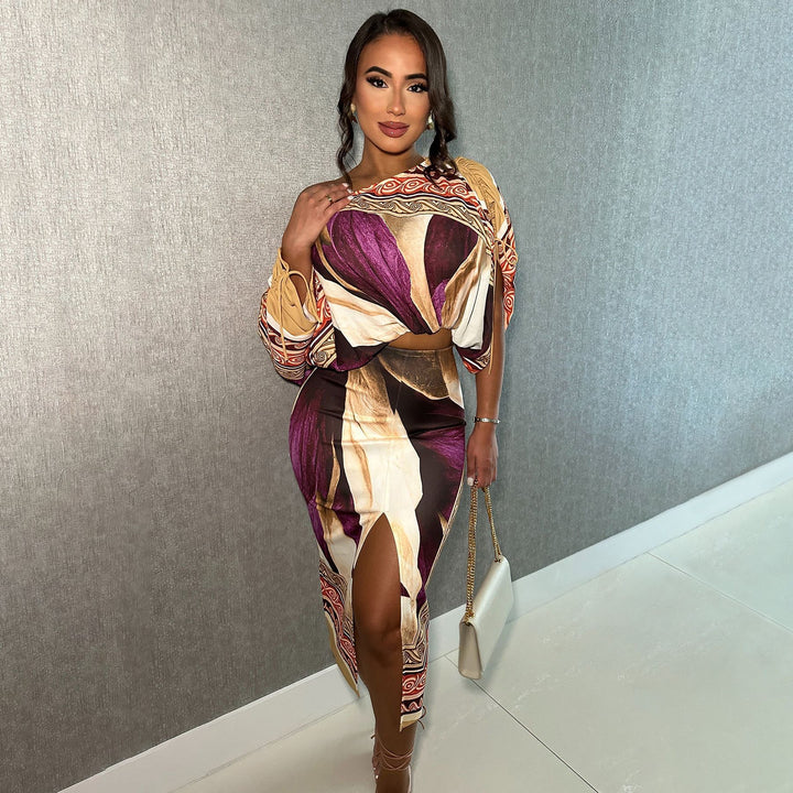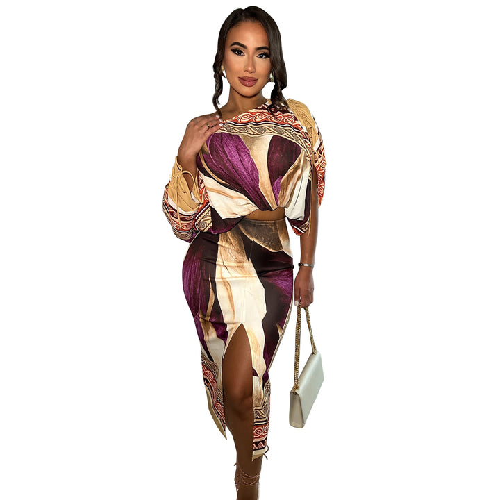 K10796 one piece minimum order European and American fashion women's clothing positioning printing off-the-shoulder split skirt set