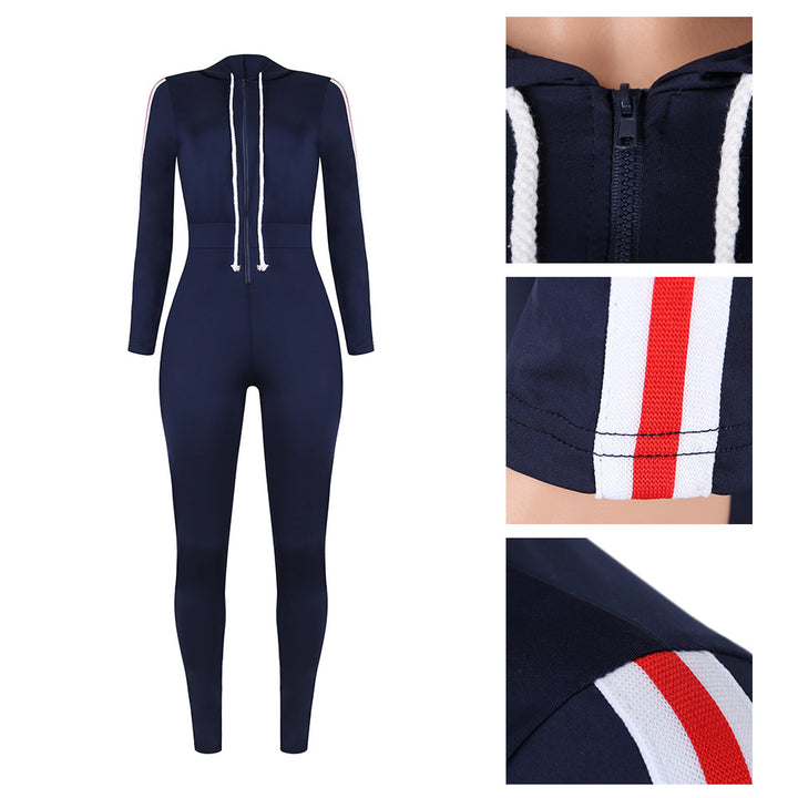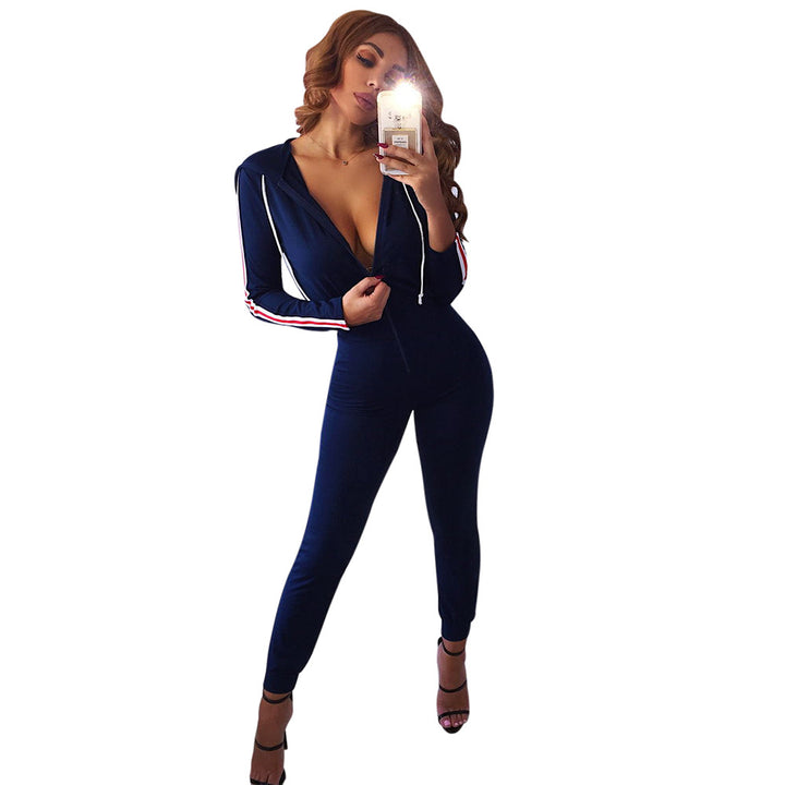 K8516 European and American sexy side personalized color bar deep V cardigan one-piece