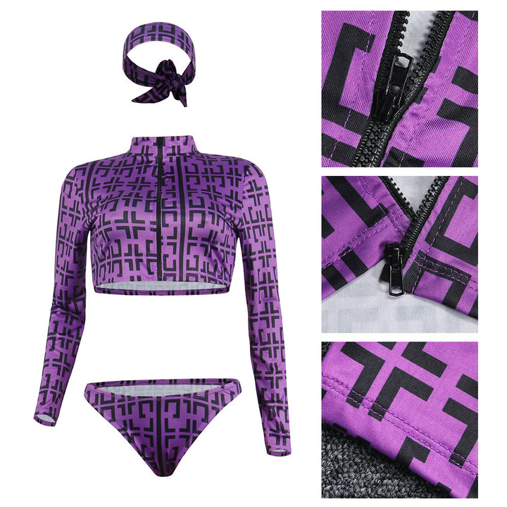 K8604 European and American sexy beach cardigan collar underwear printed with headscarf three-piece set