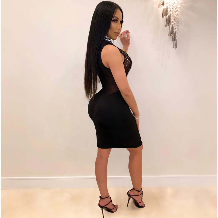 K8878 European and American sexy, hot diamond perspective, turtleneck dress nightclub clothes