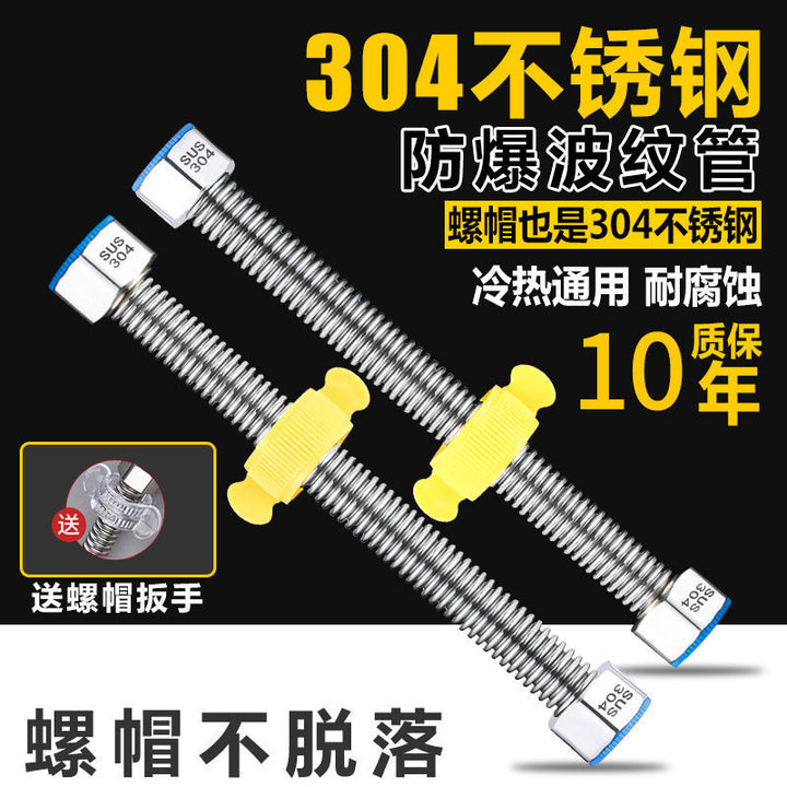 Kanqi 4-point corrugated pipe 304 stainless steel water inlet pipe water heater connected to hot and cold thickened explosion-proof water inlet hos...