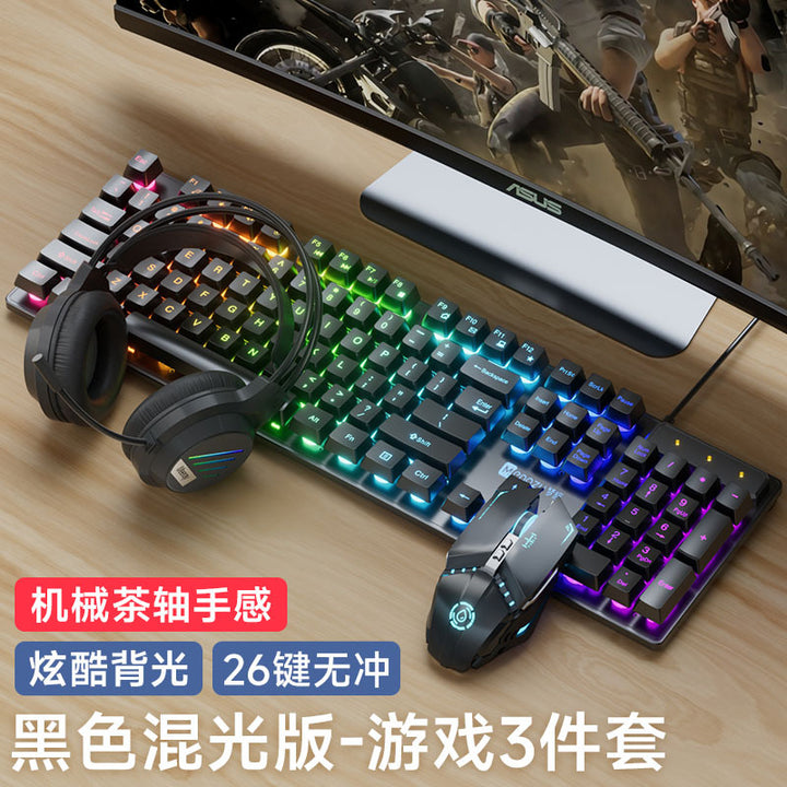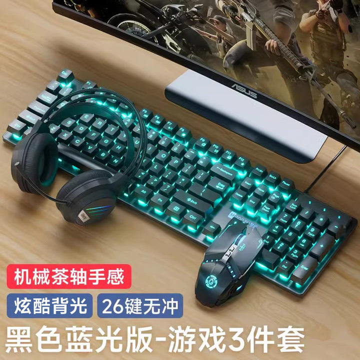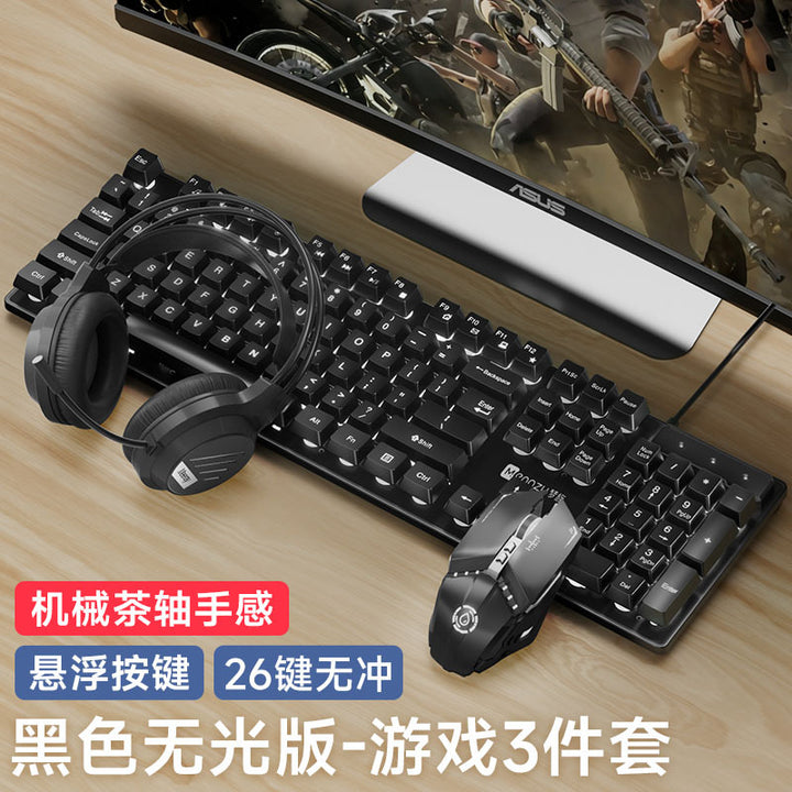 Keyboard, mouse set, wired earphones, three-piece set, notebook, desktop computer, mechanical e-sports game special peripherals