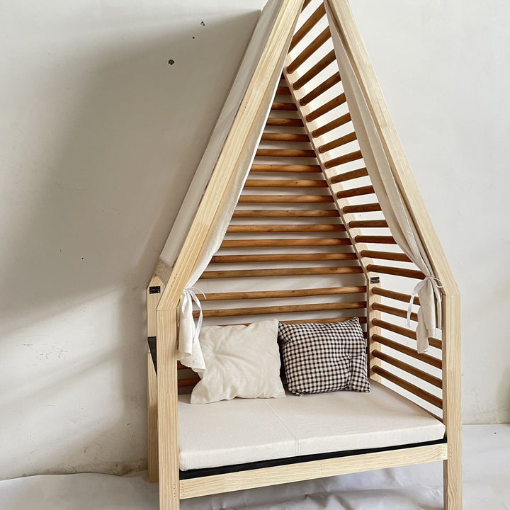 Kindergarten reading corner small sofa solid wood pine small bed children's room stool chair decoration Nordic style